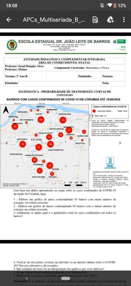 Mapas produzidos pela equipe de pesquisadores e acadêmicos de iniciação científica do projeto “Análise espacial dos casos de covid-19 em Corumbá-Ladário” estão sendo utilizados em salas de aula de escolas públicas de Corumbá para ensinar Matemática e Física.