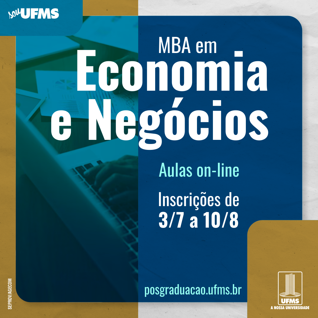 As inscrições para a pós-graduação Lato Sensu  MBA em Economia e Negócios estarão abertas de 3 de julho a 10 de agosto no portal da Pós-graduação. Podem participar portadores de diploma de Ensino Superior de todas as áreas do conhecimento.