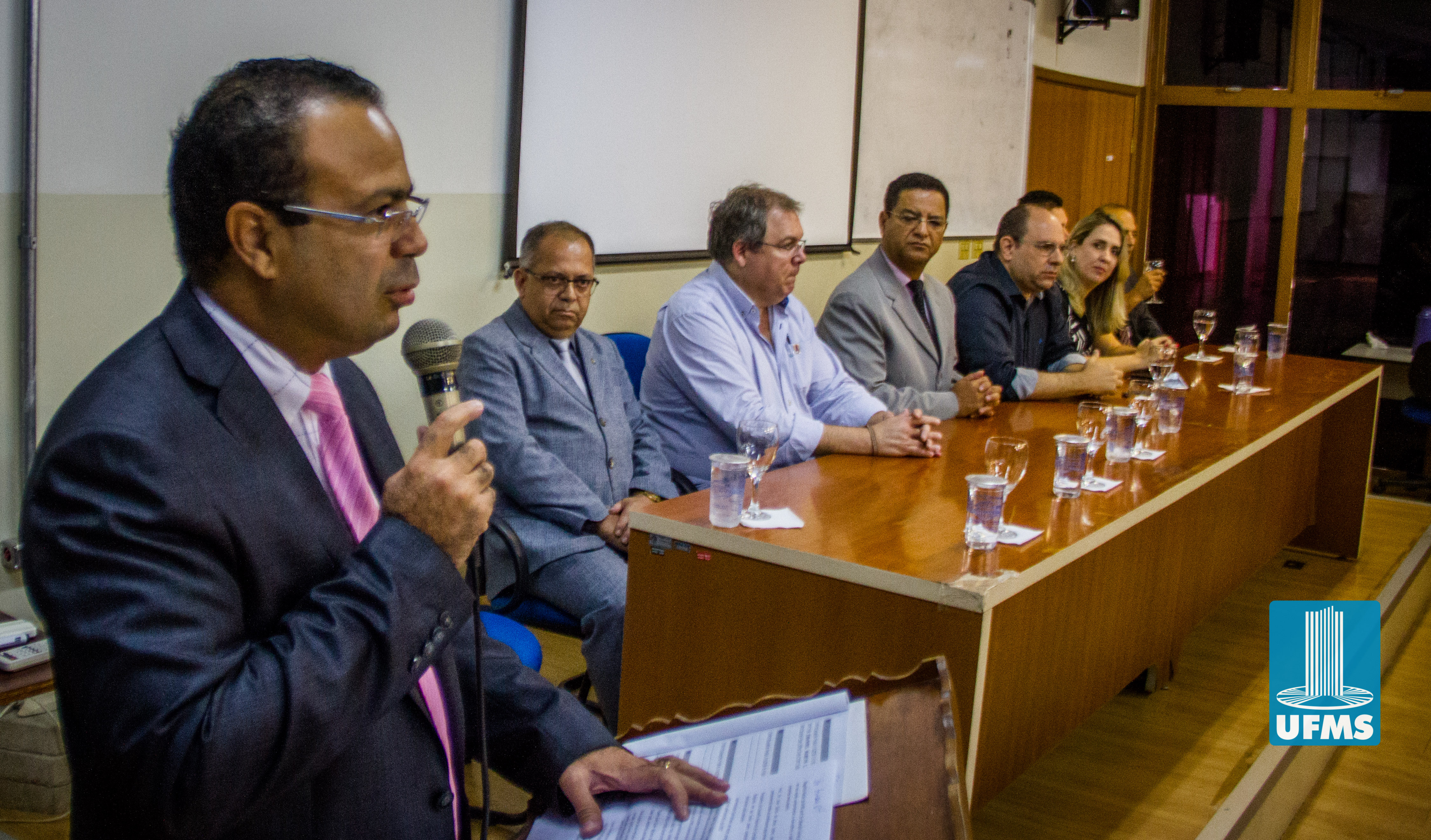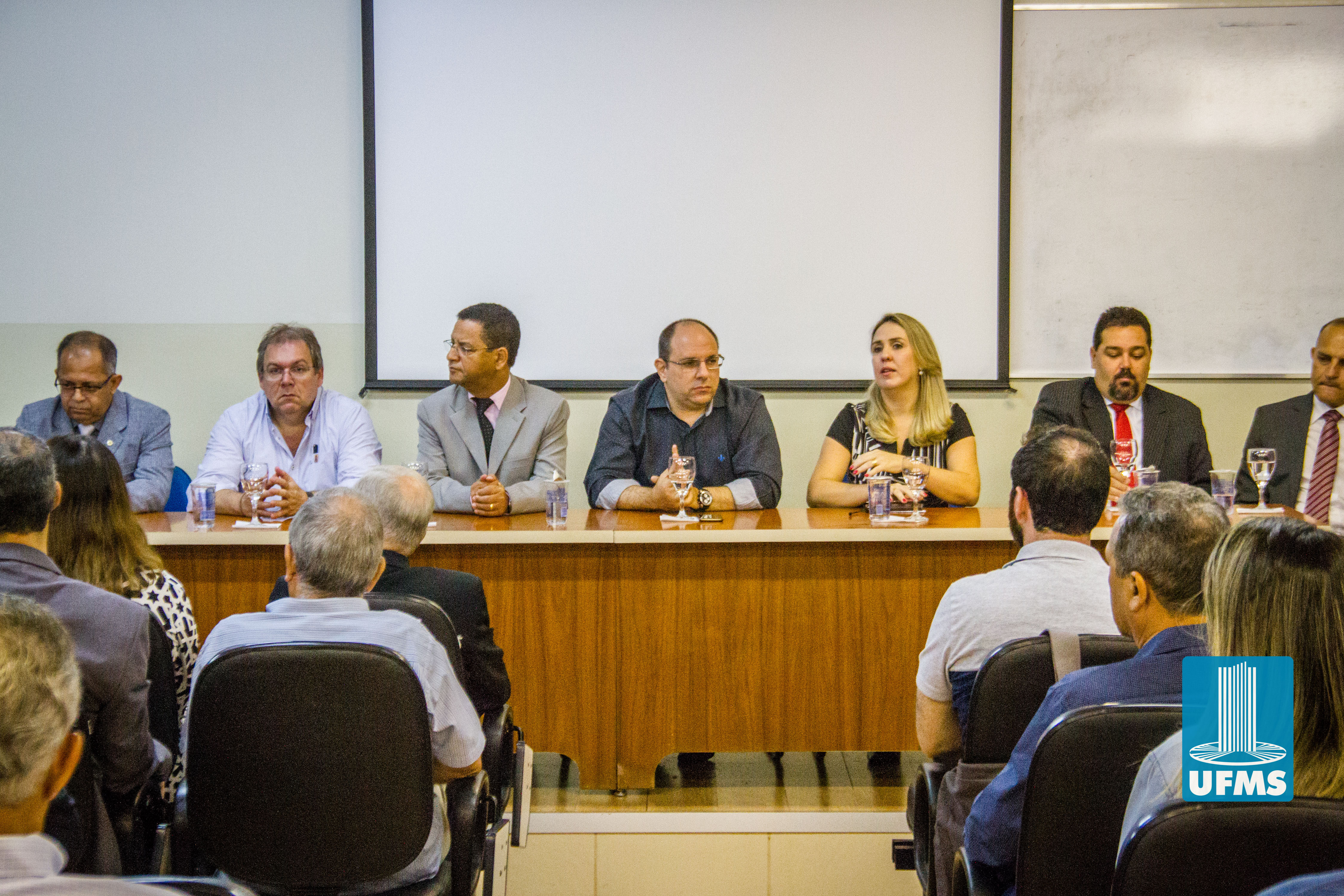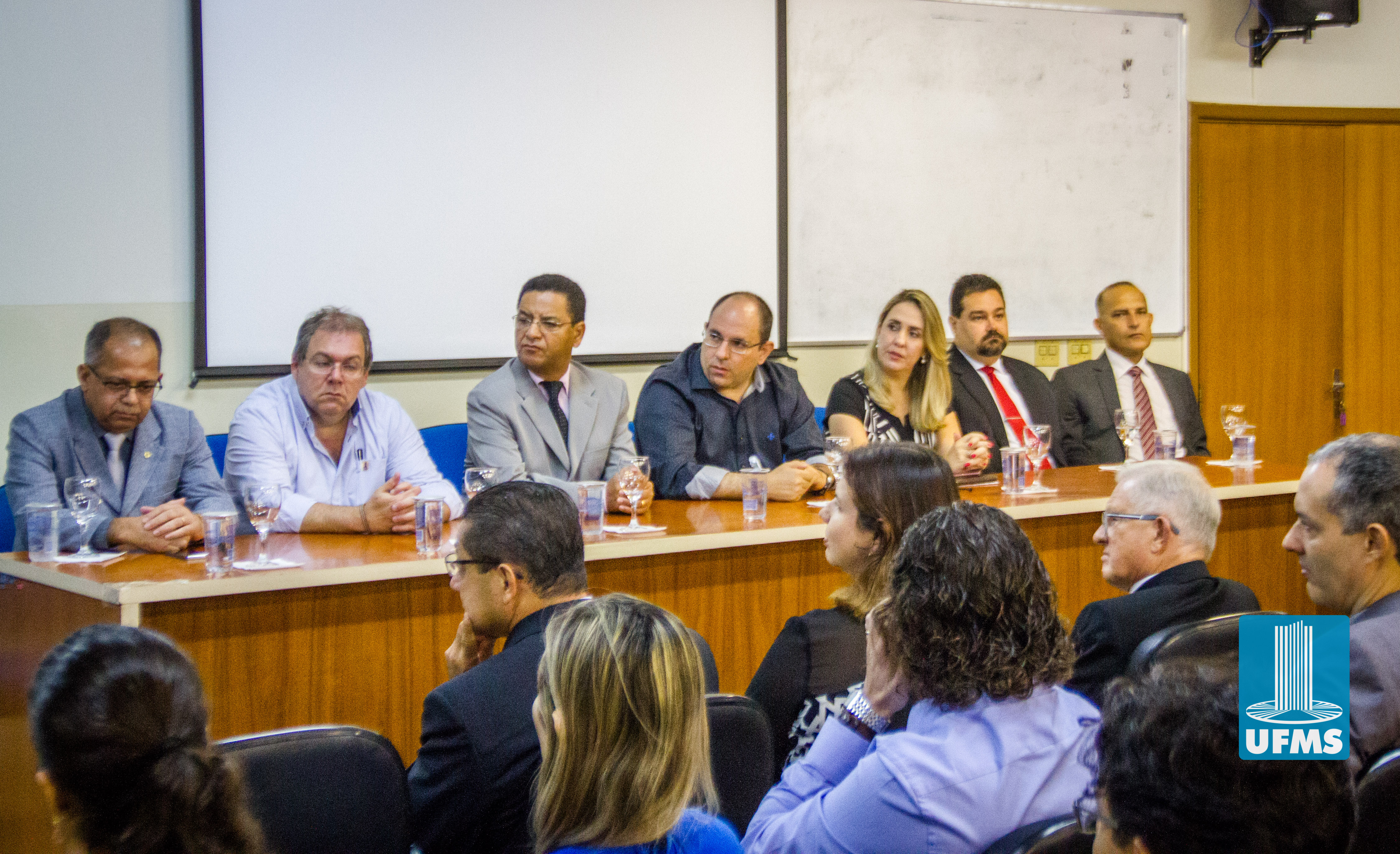 A solenidade, realizada no auditório da Escola de Administração e Negócio (ESAN), contou com a presença do Reitor da UFMS, professor Marcelo Turine, do Pró-Reitor de Pesquisa e Pós-Graduação, Nalvo Franco de Almeida Junior, do Diretor da ESAN, professor José Carlos de Jesus Lopes; além do representante do Conselho Federal de Contabilidade, Contador Carlos Rubens de Oliveira, do presidente do Conselho Regional de Contabilidade, Contador Ruberlei Bulgarelli, e do presidente do Sindicato das Empresas de Serviços Contábeis e Assessoramento (SECON/MS), Francisco Pereira Gonçalves.