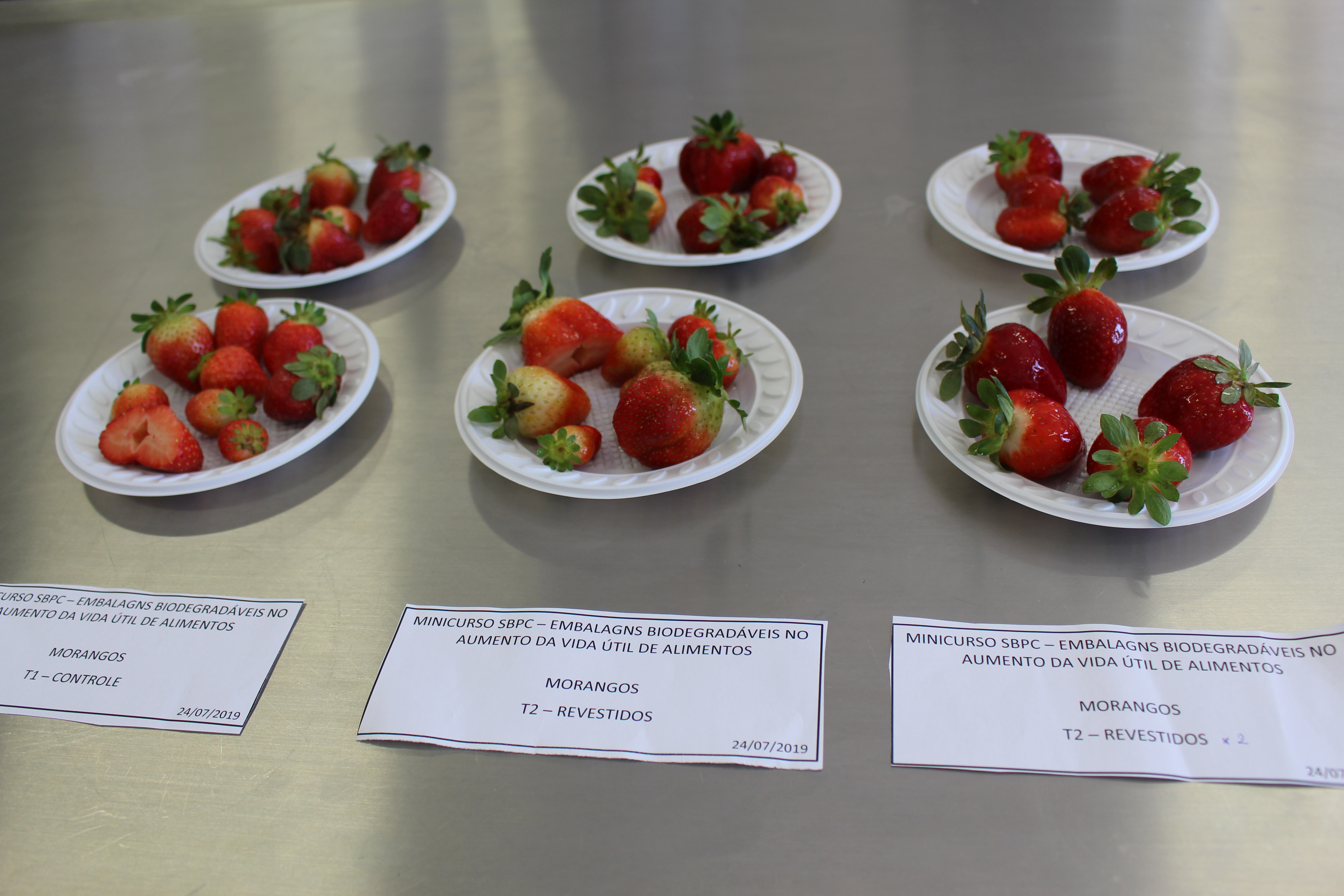 Um dos minicursos realizados durante a SBPC, abordou o uso de embalagens biodegradáveis no aumento da vida útil de alimentos. Com aulas teóricas e práticas, as professoras da UFMS Mariana Prates e Juliana Donadon, falaram como essas embalagens podem ser opções interessantes para acondicionar e prolongar a vida útil de alimentos in natura e processados. Participaram 26 pessoas.