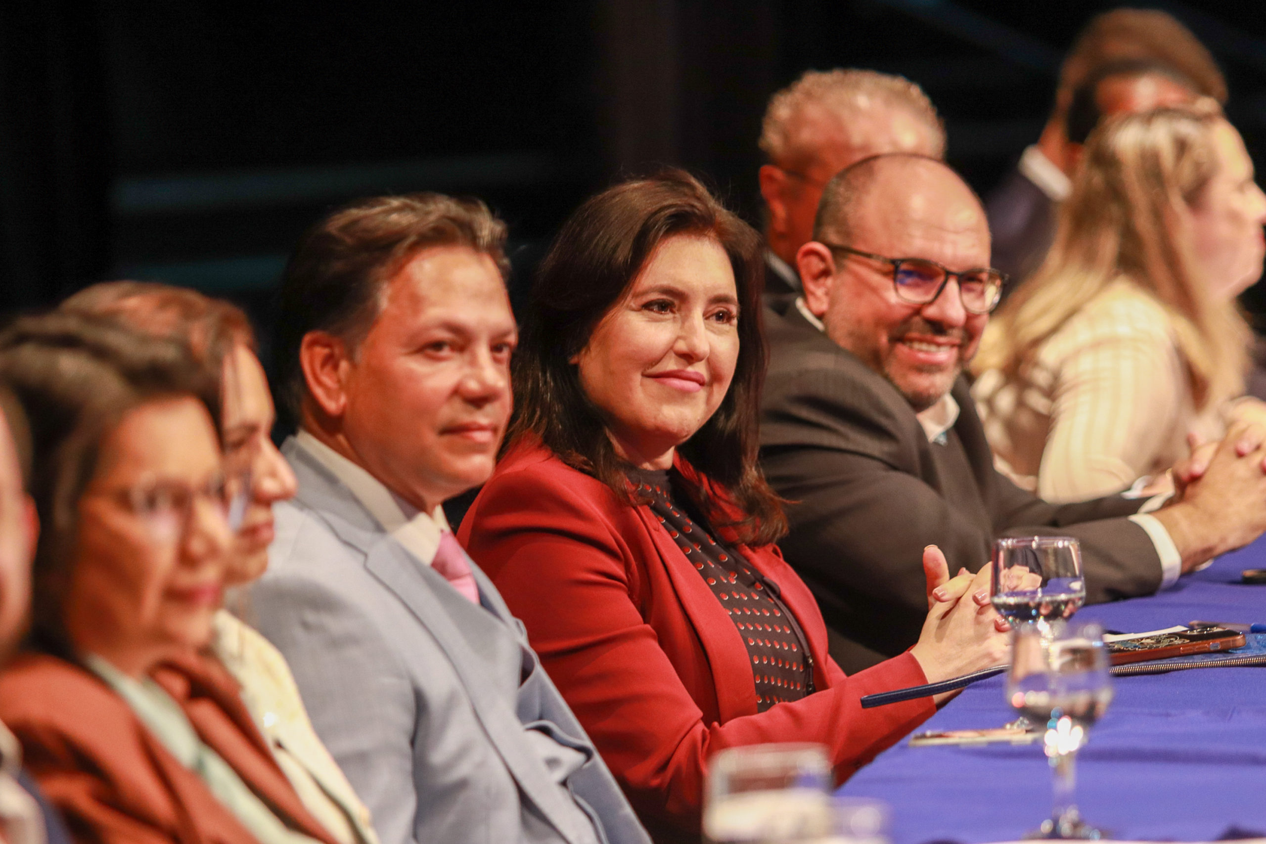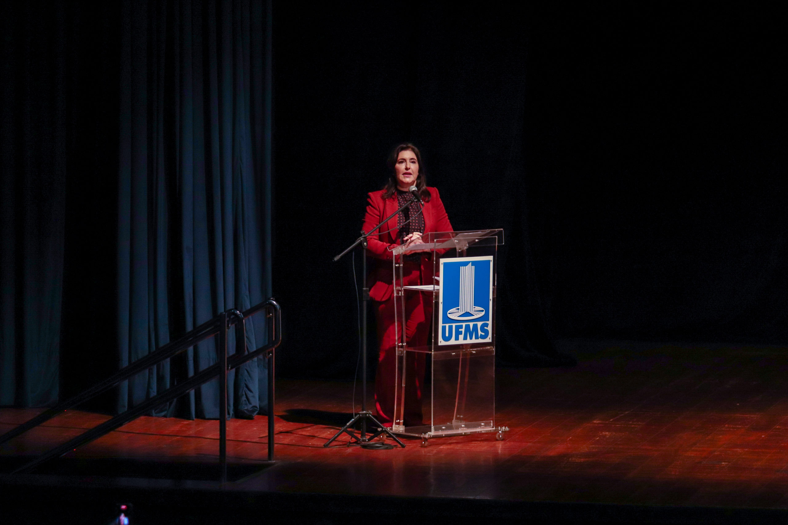 Na noite desta sexta-feira, 15, a Ministra do Planejamento e Orçamento do Brasil, Simone Tebet, palestrou durante a Aula Inaugural da Faculdade de Direito. O evento foi realizado no Teatro Glauce Rocha, na Cidade Universitária, e teve como tema O Futuro do Brasil. Em seu discurso, falou sobre inspiração e perspectivas de futuro para a plateia cheia formada, majoritariamente, por jovens.