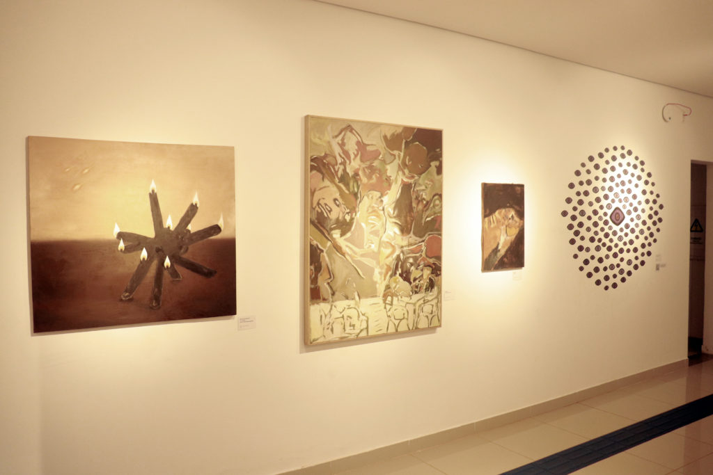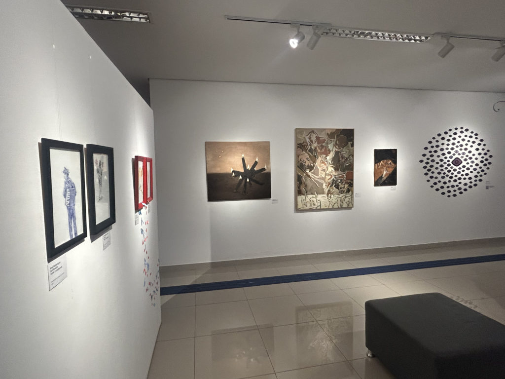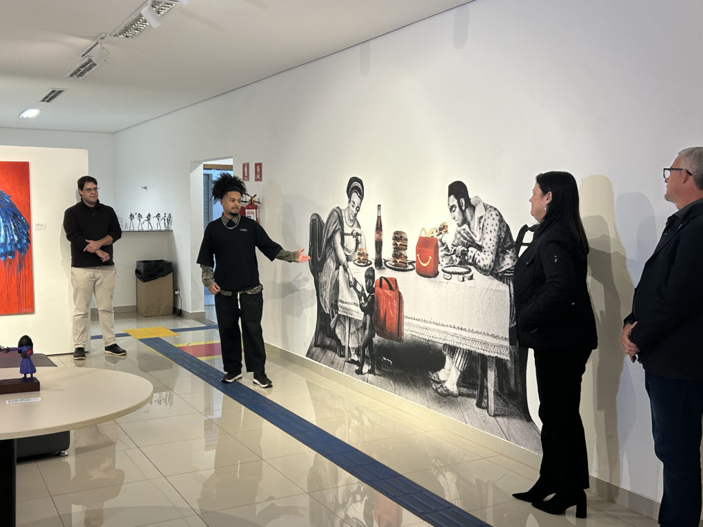 “Para mim, é uma honra estar participando dessa exposição com vários colegas, que a gente praticamente divide espaços de arte juntos. Estar aqui no nosso lar, que é a UFMS, onde a gente passou muitos anos da nossa vida, é uma extensão de nós, uma extensão da nossa casa. Eu fiquei muito feliz com o convite, fiquei muito honrado”, contou Ryan Paes, um dos expositores, com obras voltadas para o impacto, a vibração e o grito.
