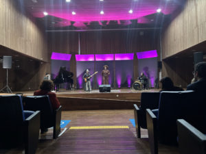 “É uma valorização do trabalho dos artistas locais, dos artistas da Universidade, dos músicos, é uma noite bem especial para apresentação dessa produção feita por eles e orientada pelos professores aqui da casa”, complementou o diretor da Faculdade de Artes, Letras e Comunicação (Faalc), Gustavo Penha, em relação a apresentação musical. “Esse espetáculo é resultado de uma pesquisa da Nária [Santos], é o trabalho de TCC que está sendo concluído, que está sendo formado em um recital didático sobre o tema do tempo, com algumas questões que abordam a questão do tempo. Foi construído ao longo de um ano, um ano e meio, mais ao menos, e aborda o tempo do ponto de vista musical, filosófico e poético, também artístico de uma maneira bem ampla, a partir da canção nacional, canções brasileiras”, explicou.