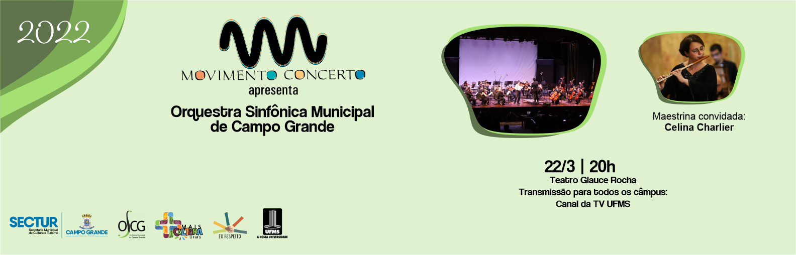 O Movimento Concerto abre a temporada de 2022 em grande estilo com a  Orquestra Sinfônica Municipal de Campo Grande e a presença de uma  concertista com carreira internacional. A apresentação especial fará uma homenagem às mulheres, com um repertório inédito e comandado pela maestrina Celina Charlier.