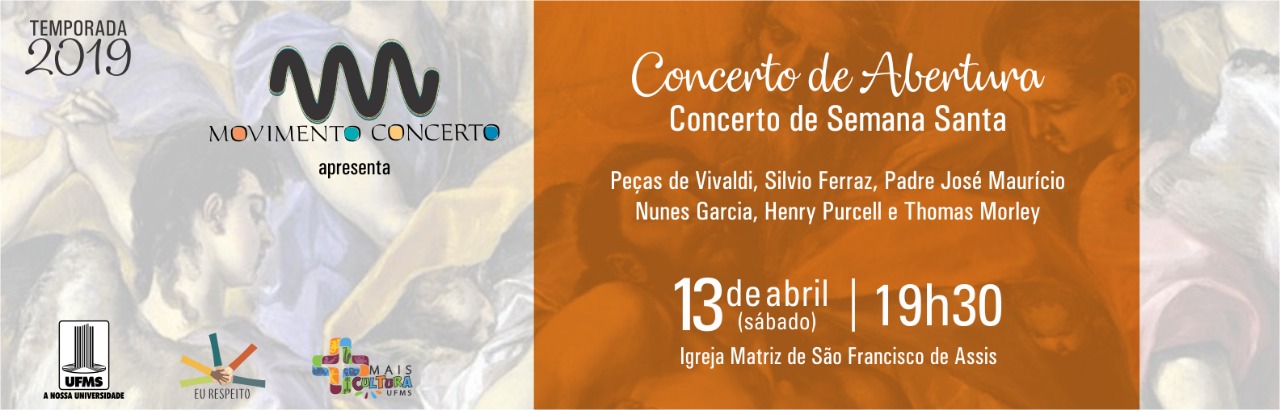 No próximo dia 13 de abril, o Movimento Concerto inicia as apresentações da temporada 2019. O concerto de abertura, alusivo à Semana Santa, será realizado na Igreja de São Francisco de Assis, às 19h30.