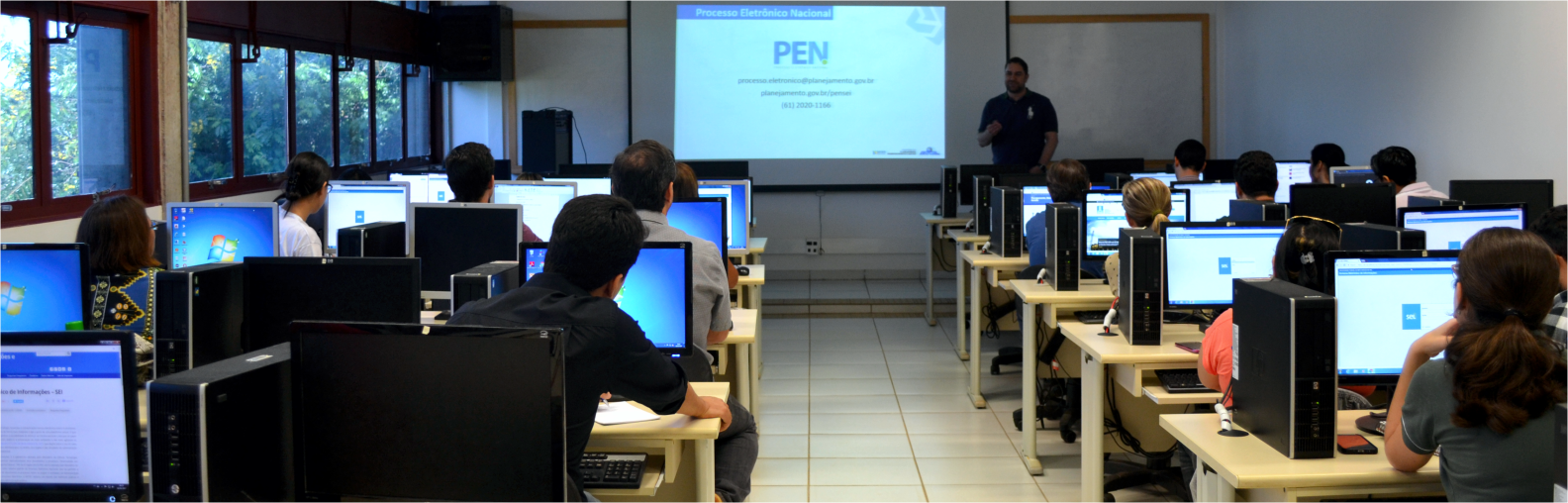 O Ministério do Planejamento, Orçamento e Gestão, por meio da Escola Nacional de Administração Pública (Enap), realizou nos dias 18 e 19 de abril um treinamento para os servidores da UFMS acessarem o Sistema Eletrônico de Informações (SEI). O curso foi realizado no Auditório 3 da Faculdade de Computação (Facom).