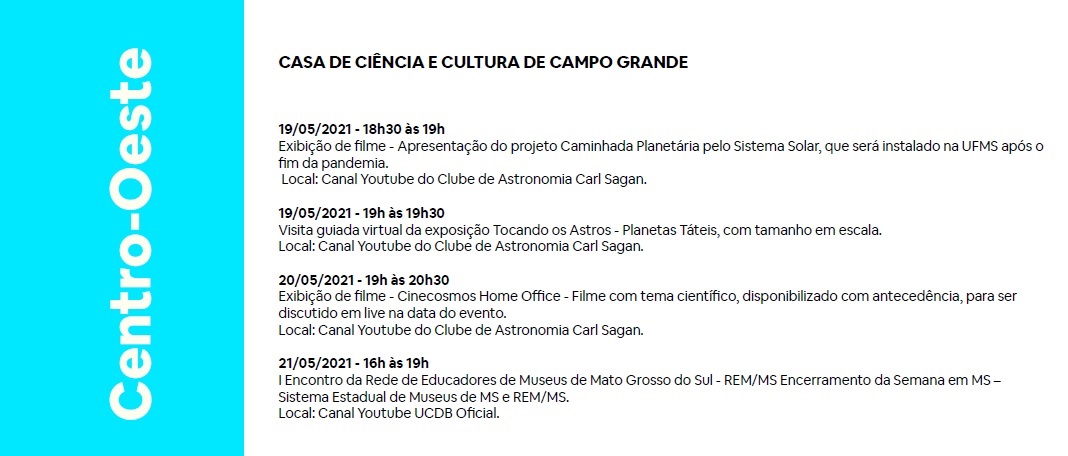 Confira mais detalhes sobre a programação do Muarq e Casa da Ciência e Cultura: