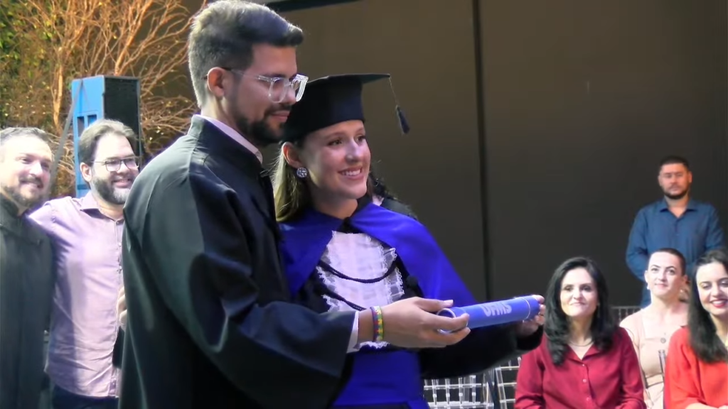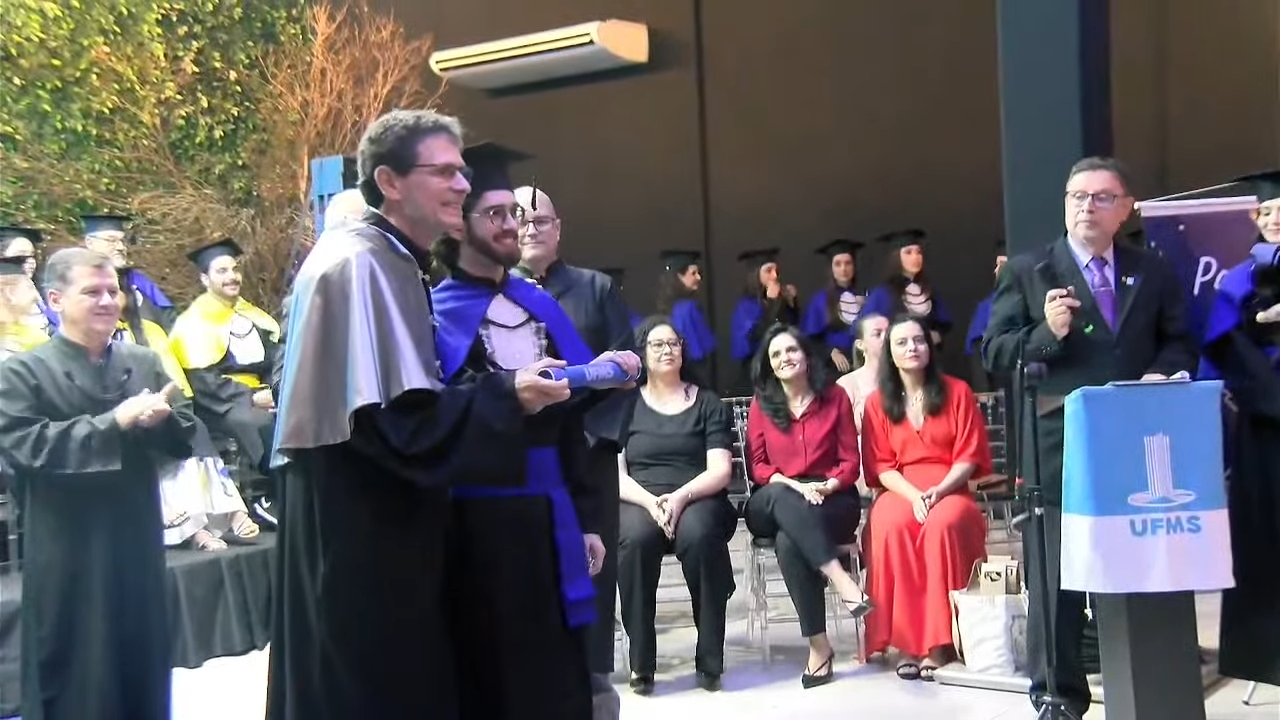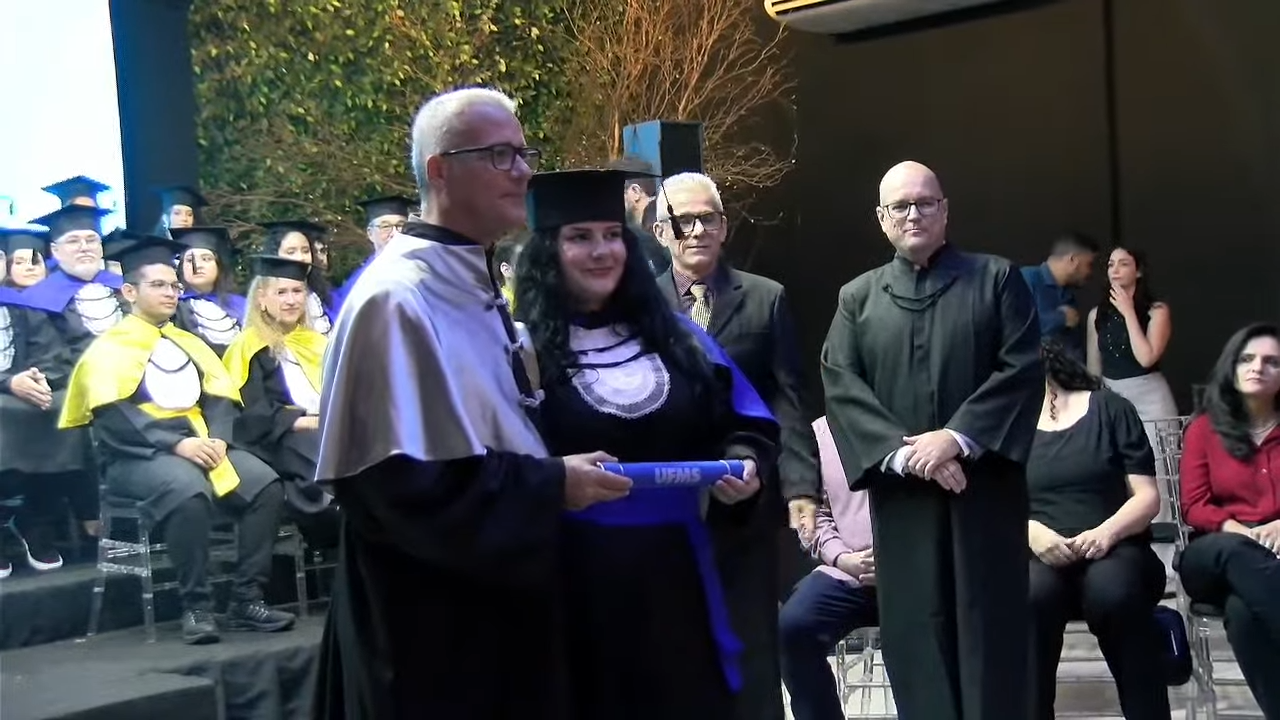 Estudantes dos cursos de Administração, Matemática e Psicologia da UFMS de Paranaíba (CPar) colaram grau na noite de hoje, 9. A cerimônia, transmitida ao vivo pelo canal da TV UFMS, reuniu 40 concluintes e foi marcada por emoção, celebração e conquistas, com a presença de familiares, servidores, membros da gestão.