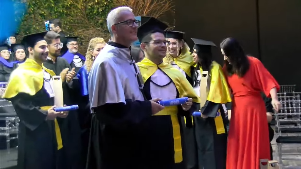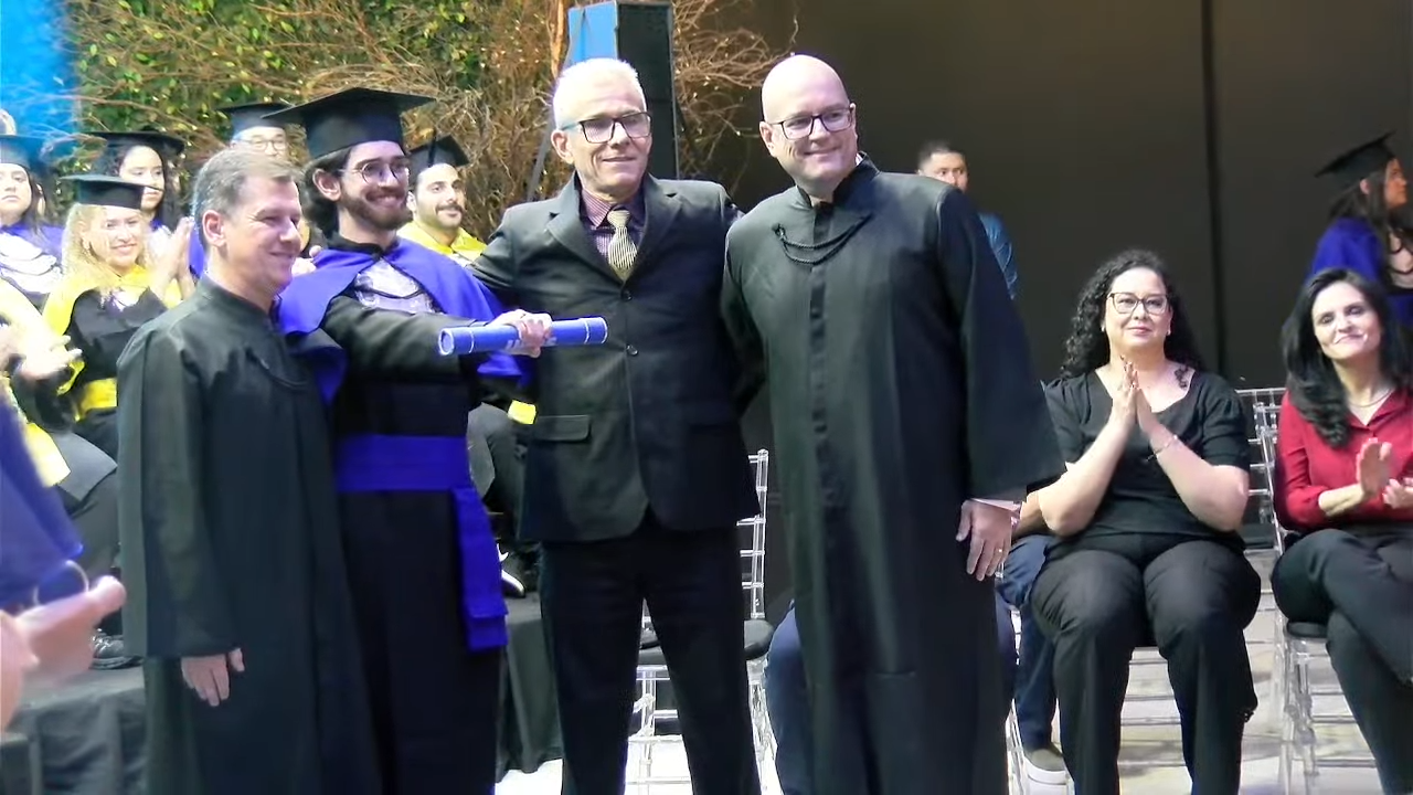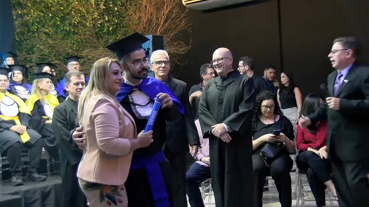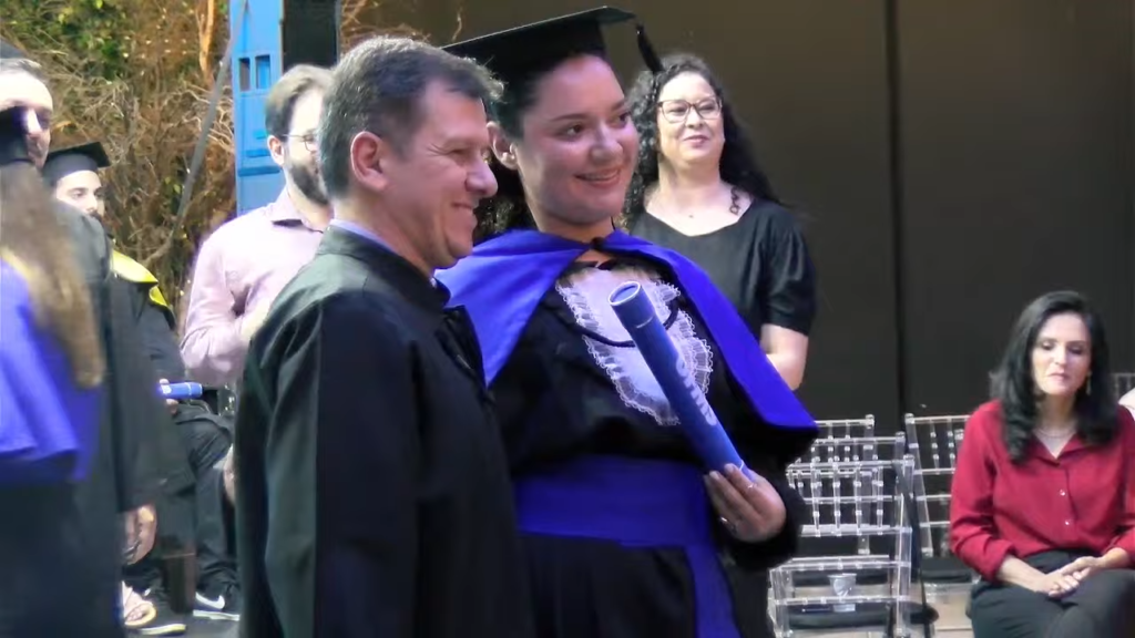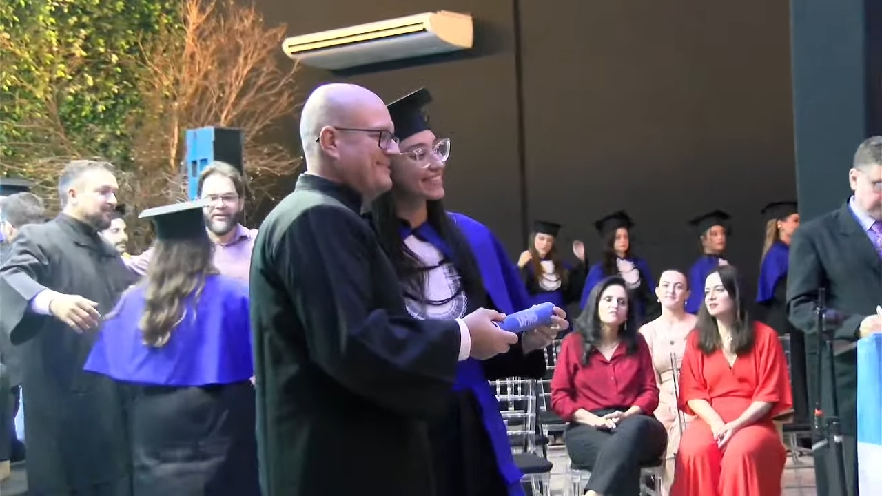 O vice-reitor Albert Schiaveto presidiu a solenidade e ressaltou a importância da educação, do esforço individual e da responsabilidade de cada profissional a partir de agora. “É isso que nós esperamos de cada um de vocês: que transformem a sociedade. Quero finalizar com a nossa missão: desenvolver e socializar o conhecimento em benefício da sociedade. Esses profissionais devem ser comprometidos com o desenvolvimento sustentável do país. Essa é a nossa missão. É linda essa missão, e eu passo essa responsabilidade para cada um de vocês. Cresçam, voem longe, sejam felizes, mas transformem a sociedade em que vivemos. Muito, muito obrigado. Estou muito feliz e emocionado em estar aqui com vocês nesta noite”, celebrou.