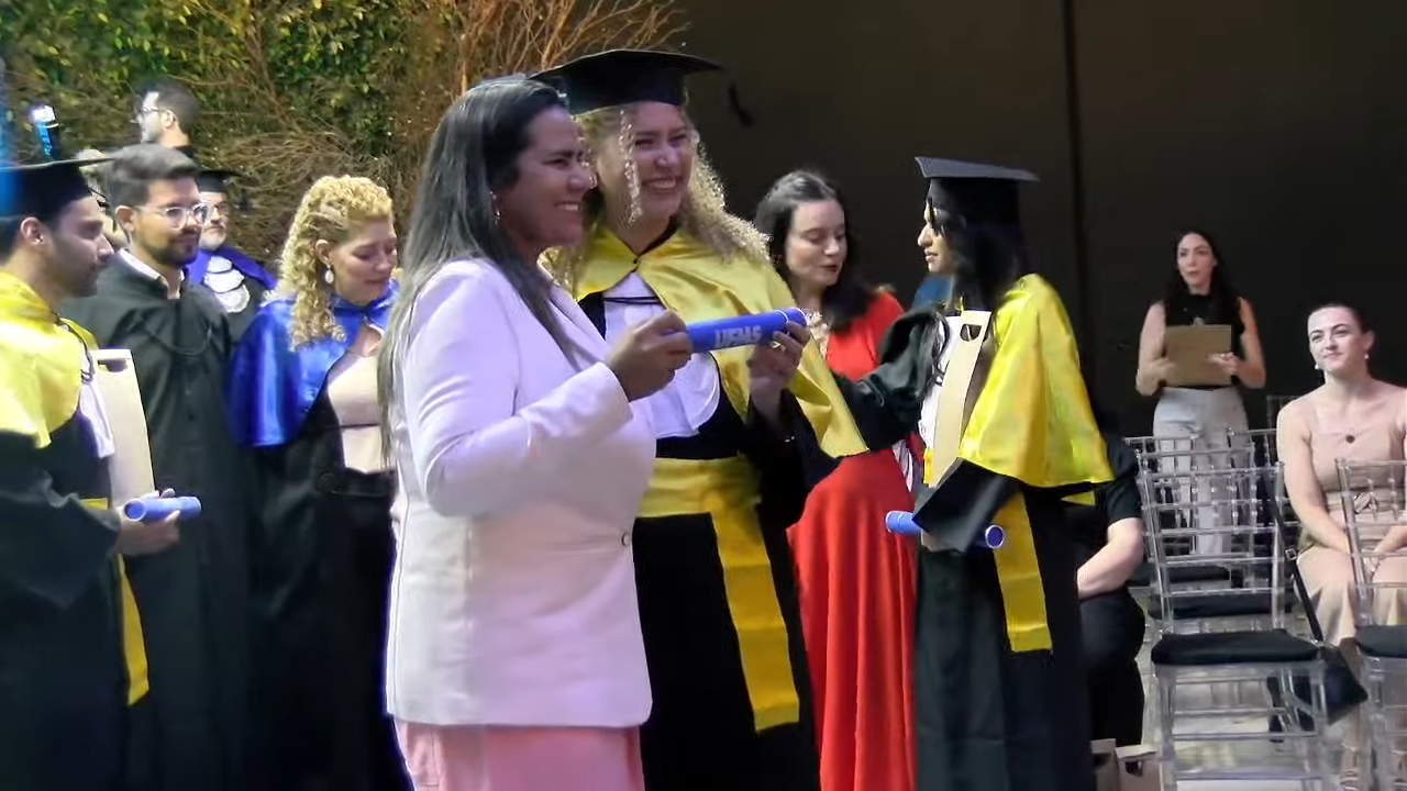 A diretora do CPar, Andréia Ribeiro, destacou o papel transformador da educação na vida dos estudantes. “Vocês são o motivo pelo qual todo o nosso trabalho vale a pena. Trabalhamos para este momento, o dia em que vocês encerram um capítulo importante da história que construíram nesta casa e na escolha que fizeram. A UFMS de Paranaíba se alegra imensamente por ter cada um de vocês aqui. Vocês brilham, são corajosos, persistentes, cheios de qualidades e virtudes. Cada um carrega uma história única, e o mundo inteiro está à espera de vocês”, declarou.