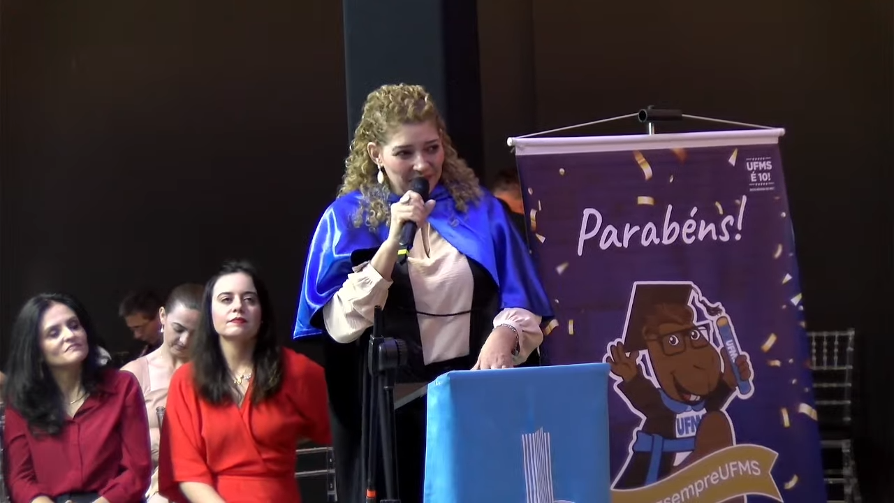 A reitora Camila Ítavo deixou uma mensagem aos presentes. “Hoje é um dia muito especial em que a gente comemora a entrega, a apresentação dos mais novos formados e formadas pela UFMS em Paranaíba. Estou muito feliz com a aprovação do mais novo curso, nosso primeiro programa de residência em Psicologia da UFMS em Paranaíba e este é um exemplo que a gente só consegue grandes projetos com o sim de cada um de nós. Meu sincero agradecimento e reconhecimento a todos os professores, técnicos e estudantes. Parabéns formandos e formandas da nossa Universidade, brilhem muito”, falou.