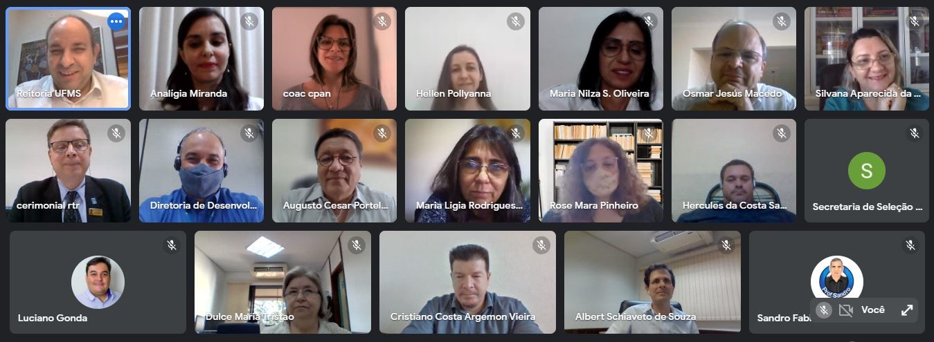 O diretor de Desenvolvimento Pessoal e Profissional, José Carlos Crisóstomo Ribeiro, pró-reitor de Gestão de Pessoas em exercício, representando a pró-reitora Lívia Gaigher Bósio Campello, também deu as boas vindas. “Estamos em mais uma solenidade de posse graças ao arrojo da administração, que desde o ano passado deu continuidade aos concursos que estavam em andamento. Conseguimos executá-los com toda a segurança, com um plano de biossegurança próprio, sem qualquer risco aos candidatos. Lamentamos que a posse não possa ser do jeito que costumamos fazer, prestigiada pelos familiares dos empossandos e também outros membros da comunidade, é um ato que damos muita importância, afinal é um novo servidor que chega e um momento importante da vida de vocês. A Progep está à disposição, vocês receberão todas as informações sobre a nossa Universidade e sobre a carreira de vocês. Desejo que tenham uma carreira bastante profícua na UFMS, contem conosco e com cada unidade para o seu crescimento”, afirmou.