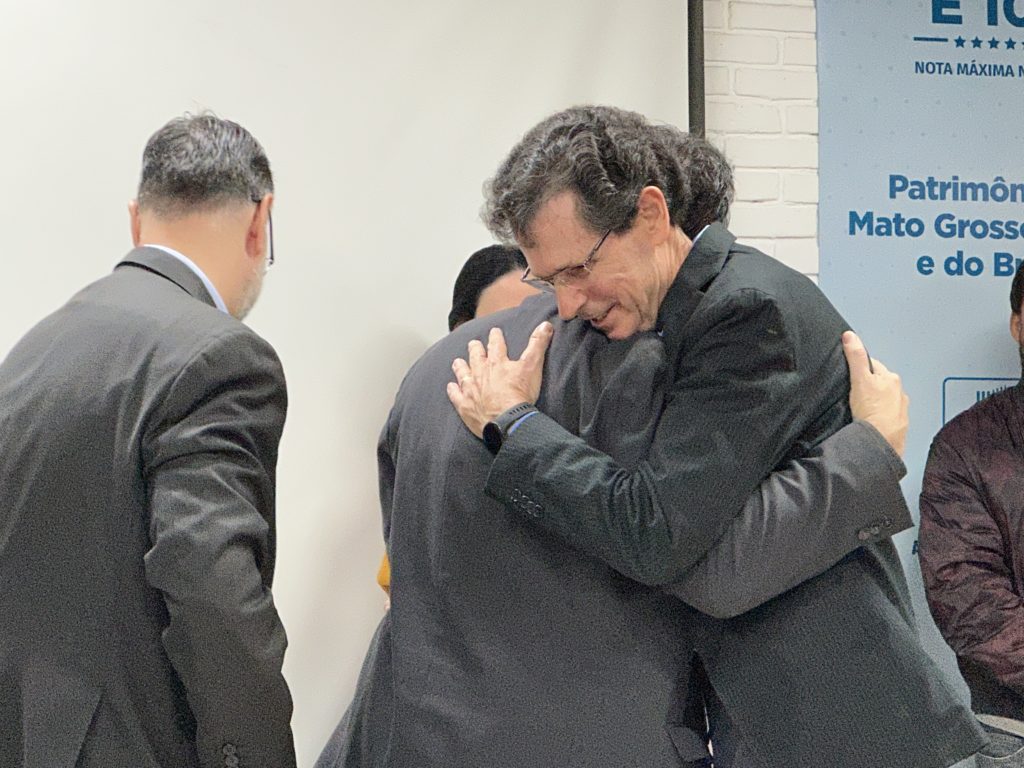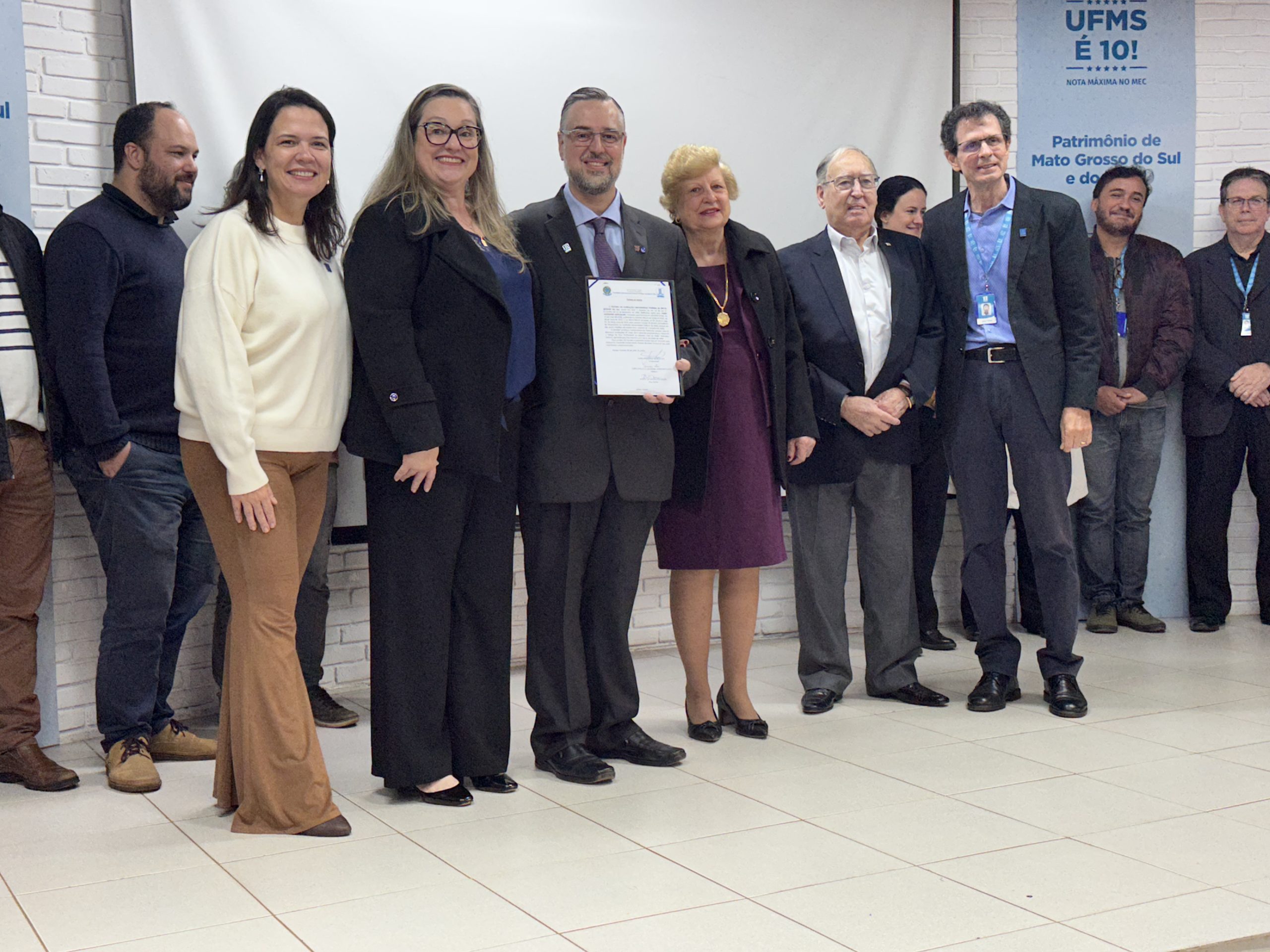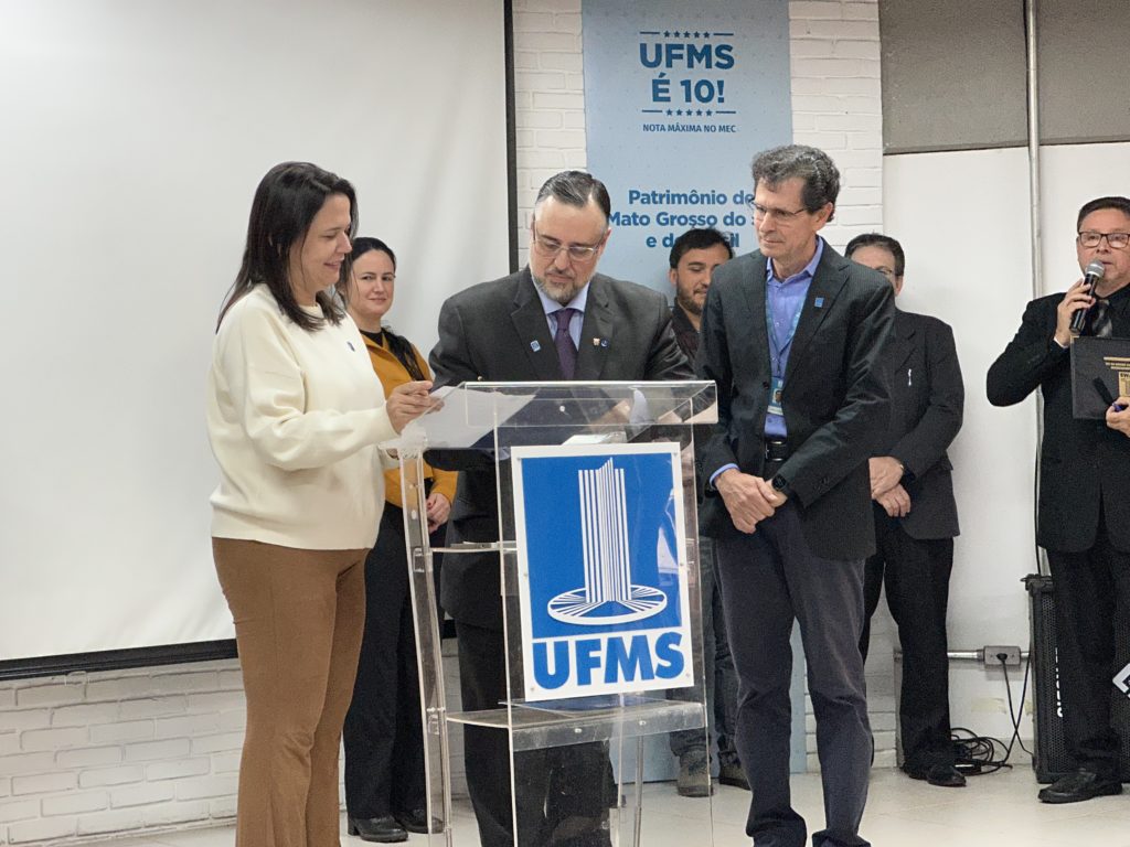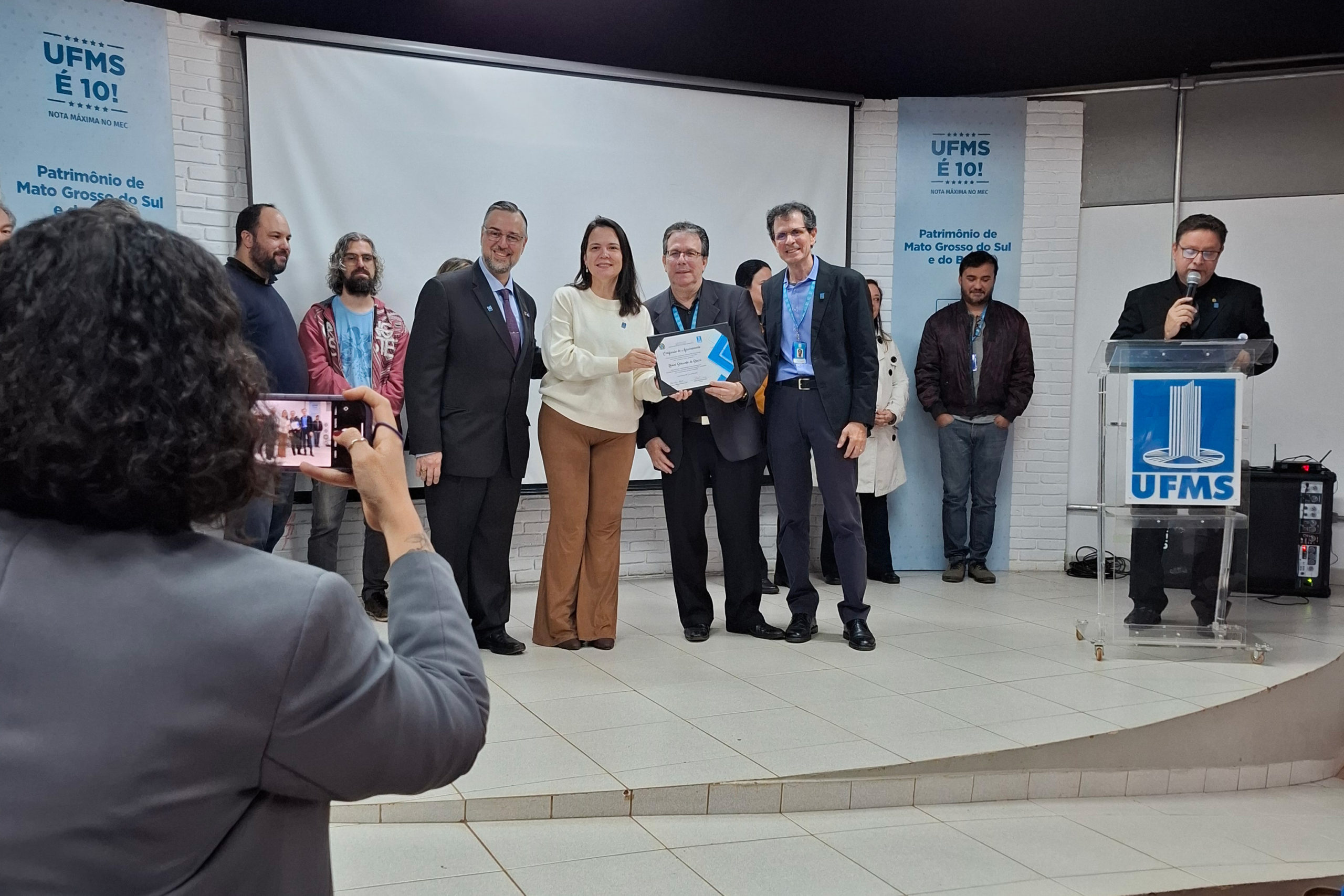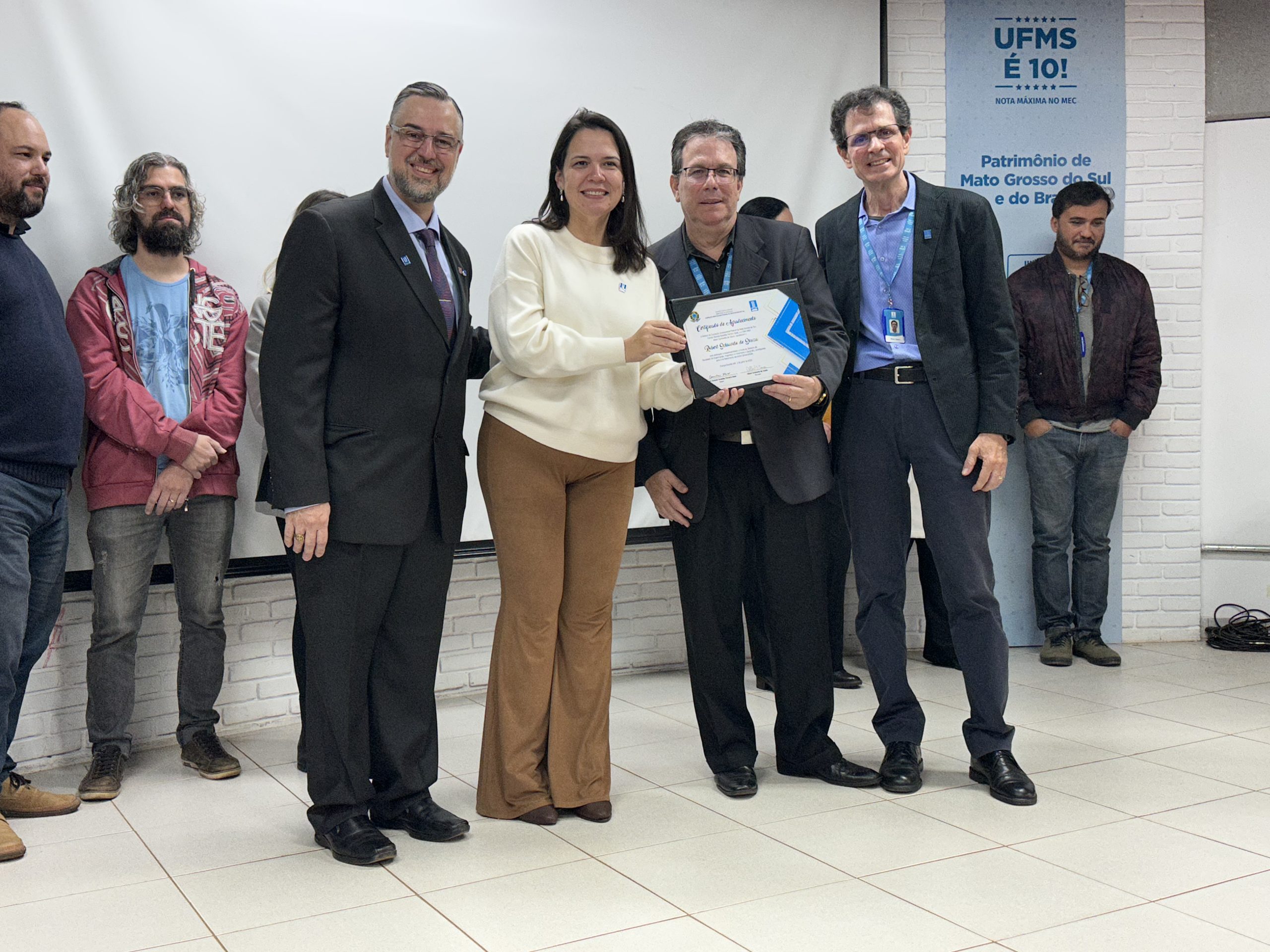 A reitora Camila Ítavo e o vice-reitor Albert Schiaveto homenagearam o professor Robert com um certificado de agradecimento por seu trabalho e dedicação. “Robert, uma vez UFMS, sempre UFMS. Você vai se aposentar, de uma maneira ou de outra. […] Amanhã, você deixa de ser servidor da UFMS formalmente, mas você continua sendo UFMS”, expressou o vice-reitor ao diretor, seu irmão.