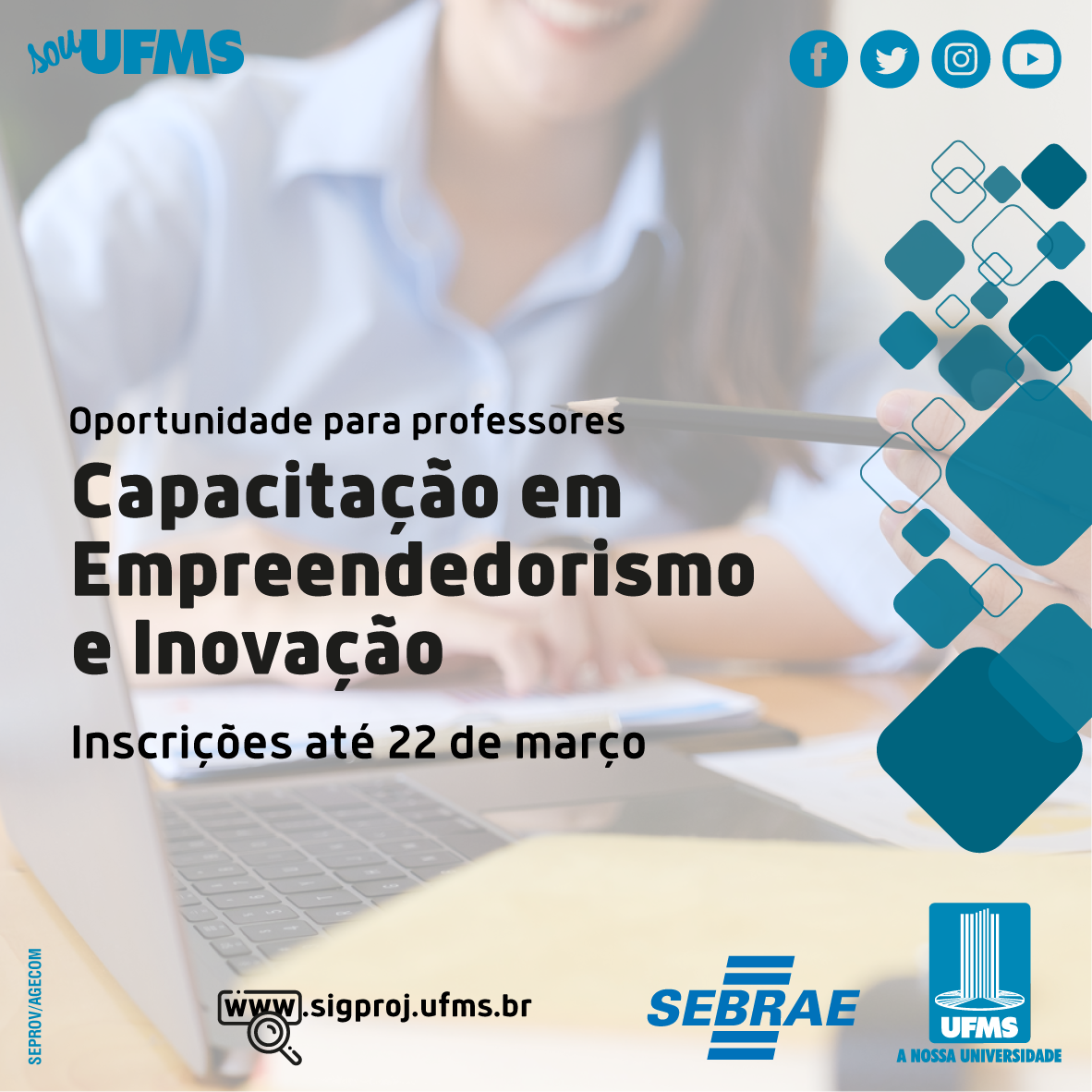 Professores da UFMS interessados em participar das novas turmas de capacitação na metodologia da disciplina de Empreendedorismo e Inovação podem se inscrever até 22 de março, no Sigproj.