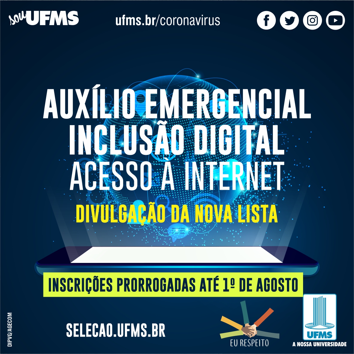 A medida visa atender todos os estudantes de graduação em situação de vulnerabilidade socioeconômica com dificuldades para acessar a Internet, fornecendo auxílio financeiro para obtenção de pacotes de dados. Para tanto, as inscrições foram prorrogadas até o dia 1 de agosto.