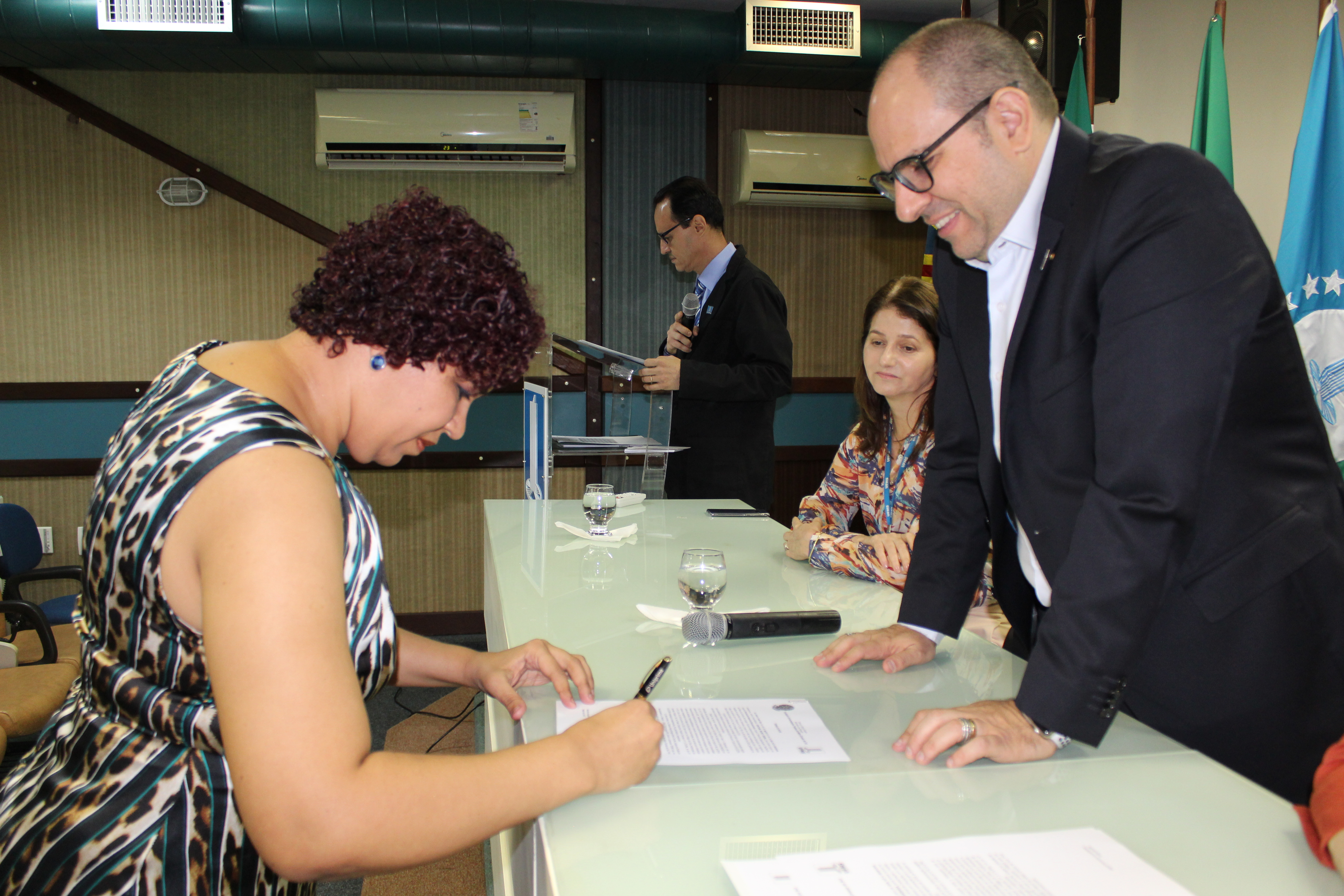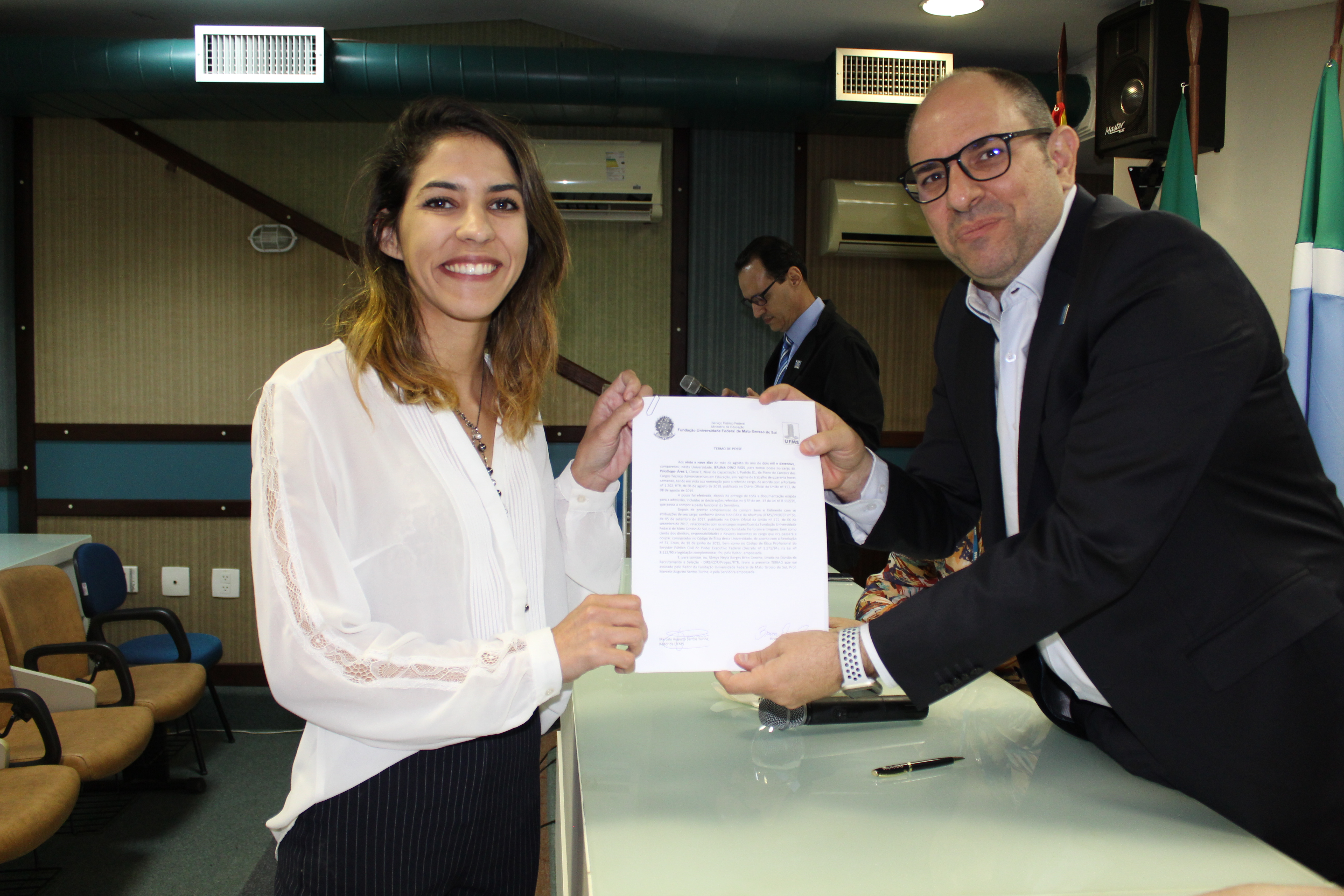 Fernando é formado em Matemática e Ciências Contábeis e vai atuar como técnico em assuntos educacionais junto à Proaes. Ele é natural do Paraná e já era servidor há dois anos e meio na Universidade Federal da Grande Dourados. “Optei em vir para a UFMS, para Campo Grande, em busca de crescimento na carreira”, disse. E por falar em crescimento na carreira, Cristiane já era servidora na UFMS há alguns anos e agora assume novos desafios. Com formação em Química, ela vai atuar como técnica em assuntos estudantis na Faculdade de Engenharias, Arquitetura e Urbanismo e Geografia (Faeng). “Comecei como técnica de laboratório no campus de Chapadão do Sul, depois me tornei assistente em administração na Faeng e, agora, finalmente, como técnica de nível superior. Vou continuar na Faculdade, mas agora com novos desafios”, falou.