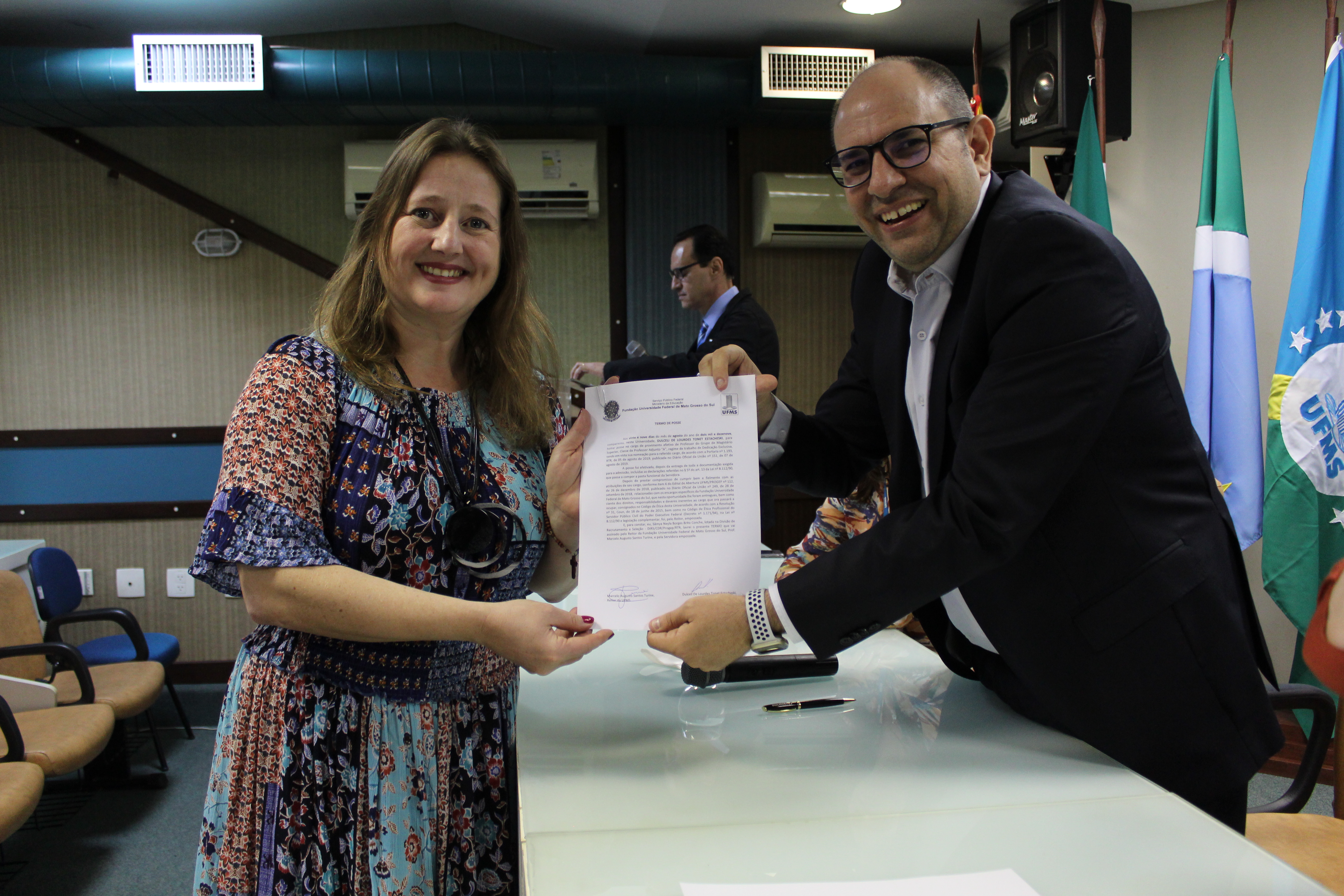 “Parabenizo a todos os servidores, cumprimentando também os amigos e familiares pela conquista e pelo momento tão importante. Estamos à disposição de todos para qualquer esclarecimento. Espero que vocês se orgulhem e alcancem aqui o que pretendem almejar”, disse a pró-reitora da Progep em exercício, Gislene da Silva. Para a pró-reitora da Proplan, Dulce Tristão, sempre é muito gratificante ver gente nova ingressando na carreira pública. “Já estou aqui há mais de 30 anos, vocês chegam com muita força, vontade, com novas propostas e muito comprometimento. Tenho certeza que cada um vai contribuir muito”, falou. “Tenho orgulho de ser UFMS, estou aqui há mais de 25 anos, como professora e agora como pró-reitora. Sabemos das dificuldades, mas também sabemos das potencialidades da nossa Instituição. Acredito que cada um de vocês vai nos ajudar a superar os desafios. Imaginem a nossa responsabilidade, já formamos mais de 60 mil profissionais. Por isso, não é apenas um emprego, temos uma missão junto ao estado e ao país. É sempre uma honra poder receber nossos novos colaboradores”, conclui a pró-reitora da Proaes, Ana Rita Barbieri.