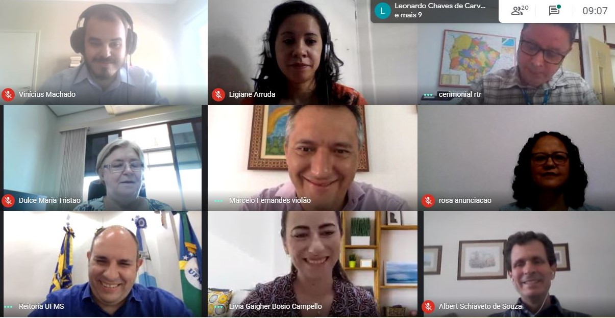 Em atendimento ao plano de biossegurança e orientações da Organização Mundial de Saúde para o combate à pandemia da Covid-19, a cerimônia foi virtual. Na posse o reitor Marcelo Turine deu as boas vindas aos novos colegas e desejou sucesso. “Obrigado pela escolha de estarem conosco na UFMS, para nós é uma satisfação muito grande recebê-los. Três palavras representam os pilares estratégicos do desenvolvimento da Universidade que são: governança, sem ela não temos uma Universidade eficiente; inovação, e peço que sempre nos ajudem com ideias criativas para cumprirmos nossa missão social; e sustentabilidade, o planeta precisa que a gente contribua para o desenvolvimento sustentável e cada ação nossa, no nosso ambiente de trabalho, na Universidade, pode contribuir para isso. Desejo muito sucesso a vocês e que Deus os ilumine nessa jornada”, disse.