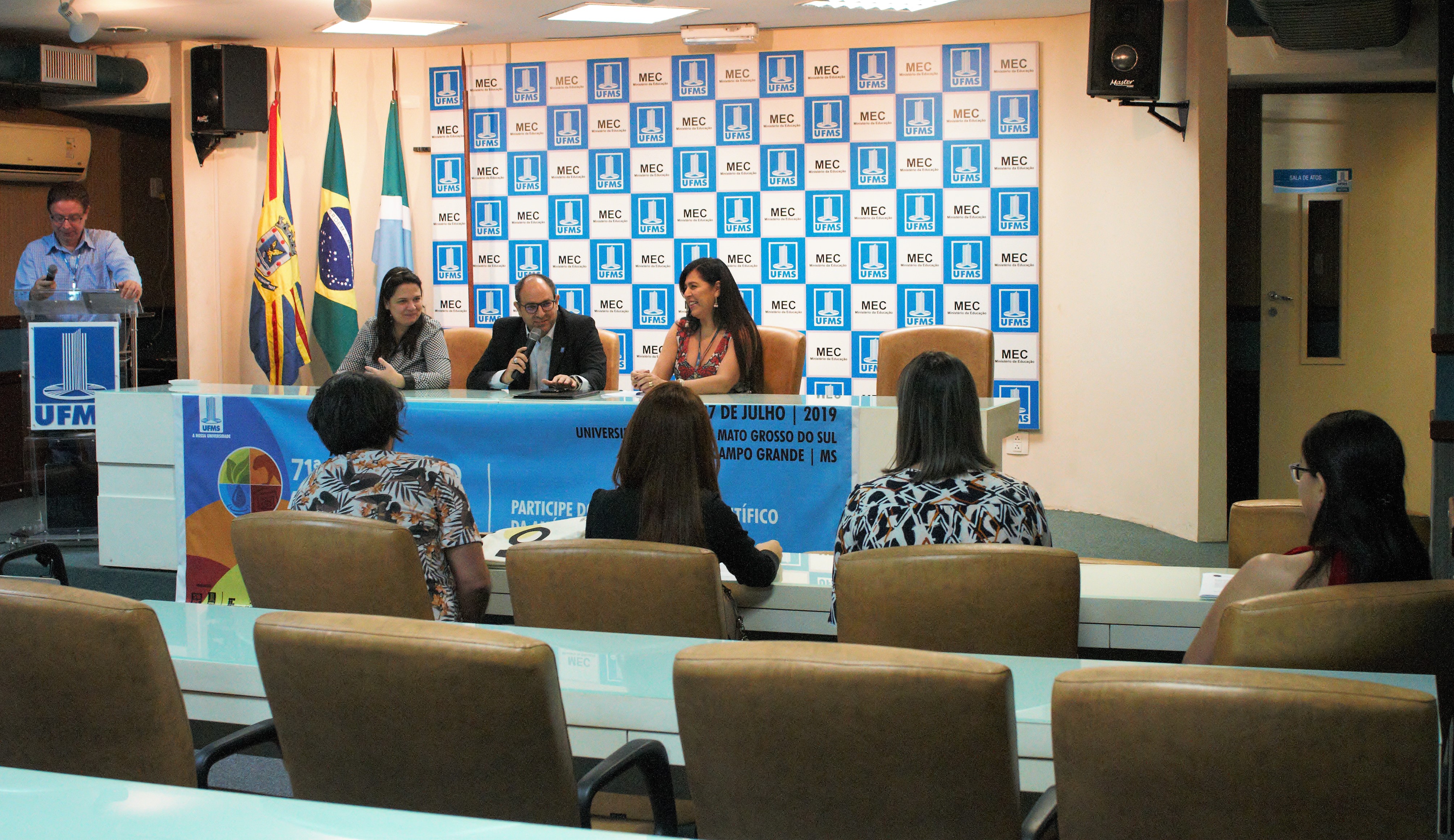 O reitor Marcelo Turine deu as boas-vindas a todos e falou um pouco sobre a região e a missão da Universidade. “Mato Grosso do Sul é um estado pujante com condições de ser o melhor para se viver e trabalhar. Atendemos a alunos de todos os municípios e esperamos contar com vocês para continuarmos ofertando uma educação pública de muita qualidade. Desejo a vocês sucesso e que sejam muito felizes na UFMS”, disse.