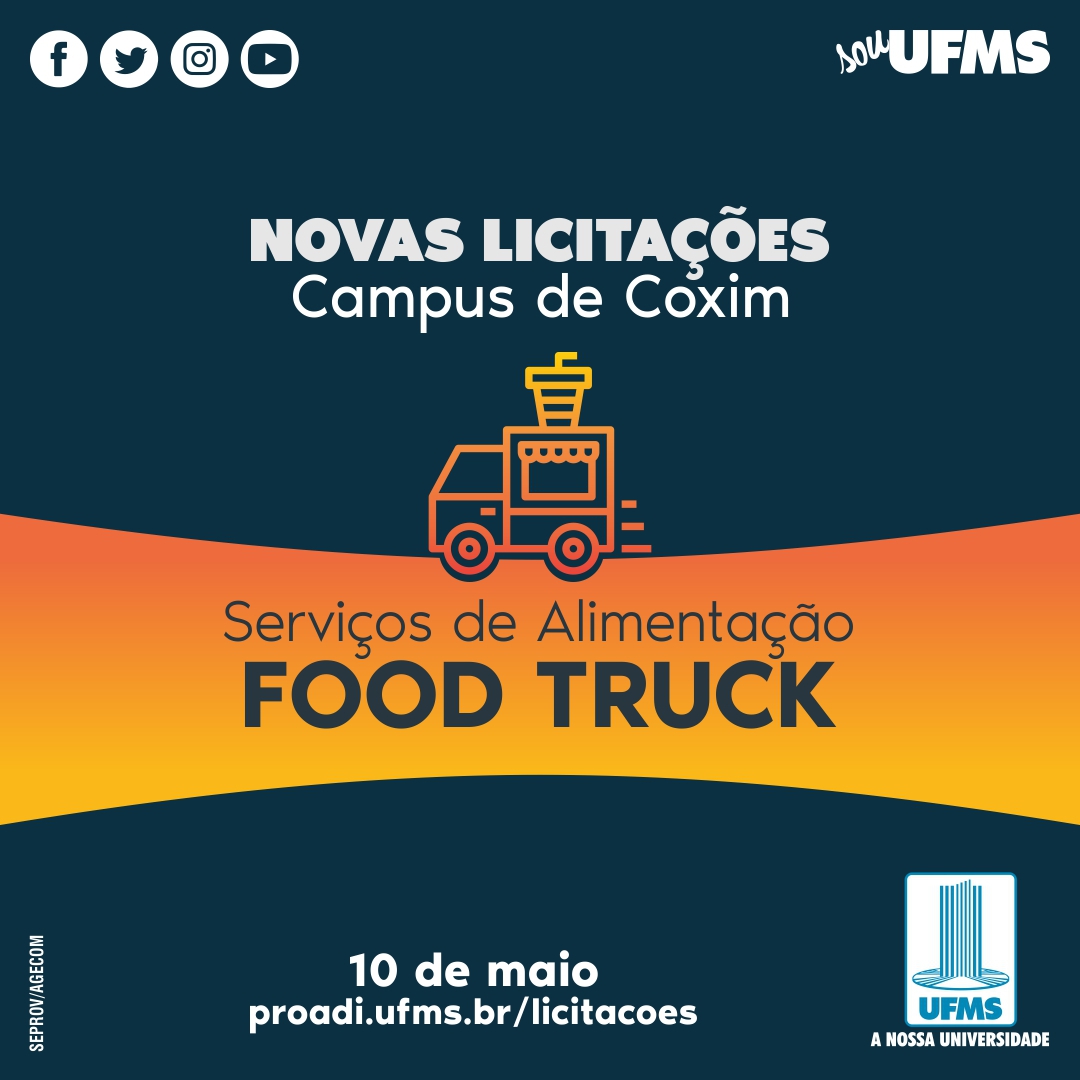 Empresas interessadas em oferecer serviços de alimentação no Campus de Coxim podem participar de licitação na próxima semana. “Precisamos atender às necessidades da comunidade acadêmica da UFMS em todas as suas unidades, por isso estamos oferecendo, de acordo com a política de ocupação de espaços físicos da UFMS e com as normas de licitação, a oportunidade para instalação de food trucks móveis, ou seja, trailer, furgão ou caminhonete adaptados, para ofertar serviços de alimentação de forma saudável, com qualidade e preço acessível”, diz o pró-reitor de Administração e Infraestrutura (Proadi) Augusto Malheiros. De acordo com o pró-reitor, a modelagem definida para a concessão, levou em consideração as especificidades e estudo e realidade mercadológica do município.