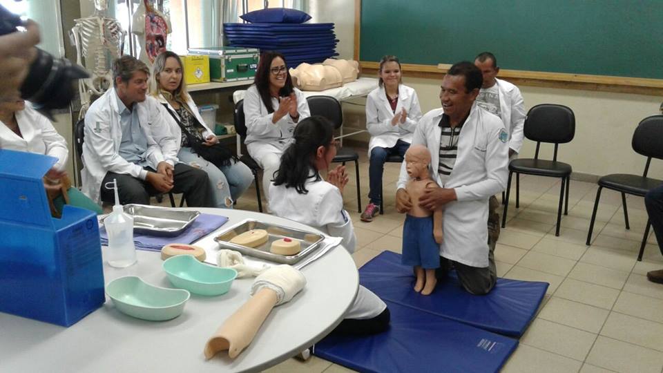 Foi realizada visita na Clínica Escola Integrada, sala de aulas, sala de tutoria e laboratório de enfermagem. No laboratório de Enfermagem realizaram técnicas de enfermagem, como lavagens das mães, curativos e primeiros socorros. O grupo interagiu com os alunos e com os professores na Unidade 12.