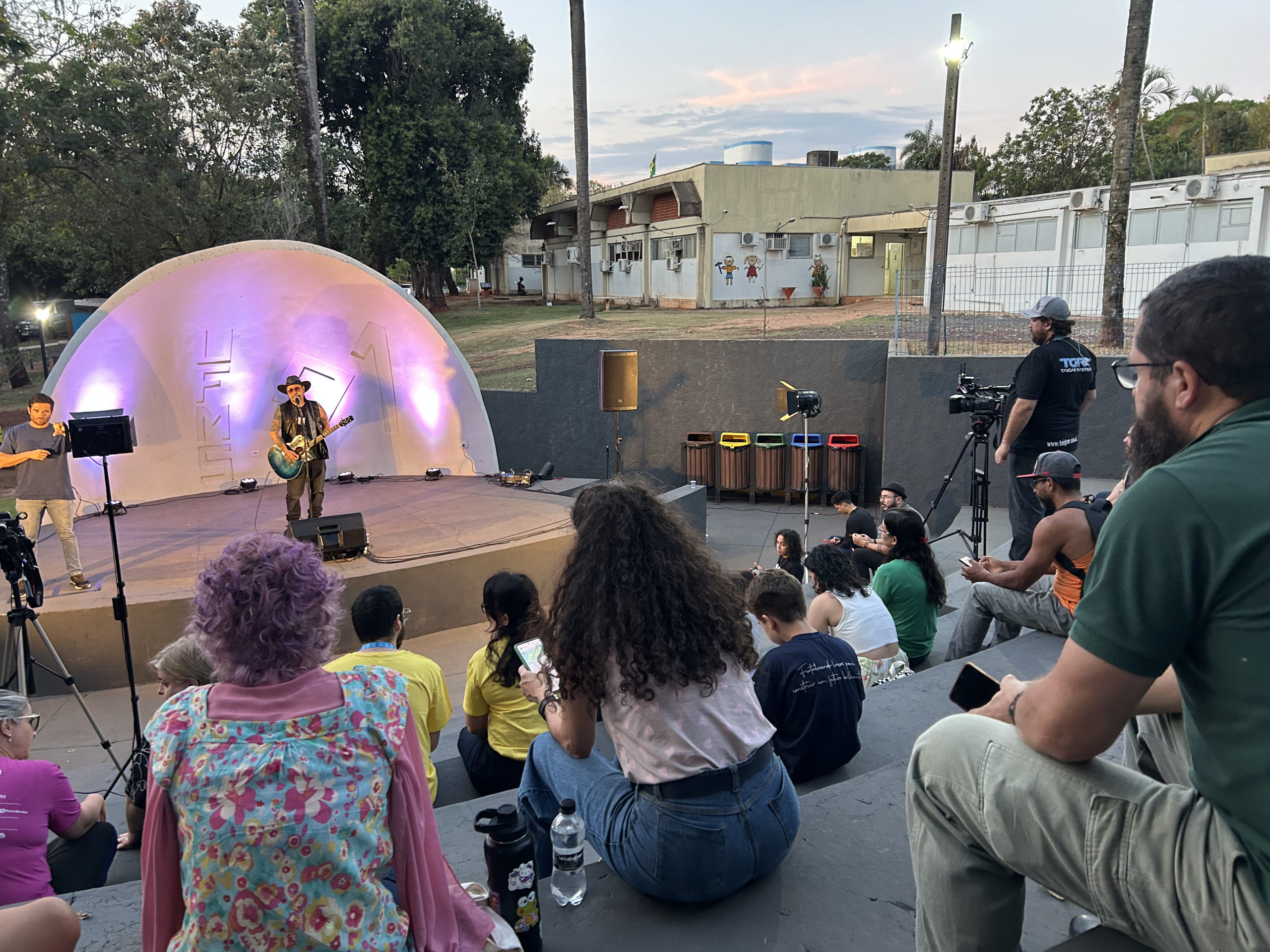 A última edição da Sexta na Concha, realizada no dia 5, trouxe algumas novidades, entre elas palco aberto para professores, técnicos-administrativos, estudantes e colaboradores, além de transmissão ao vivo pelo canal da TV UFMS. Ao som de Guga Borba e talentos da Universidade, os presentes puderam aproveitar, de maneira gratuita e descontraída, canções regionais e músicas internacionais.