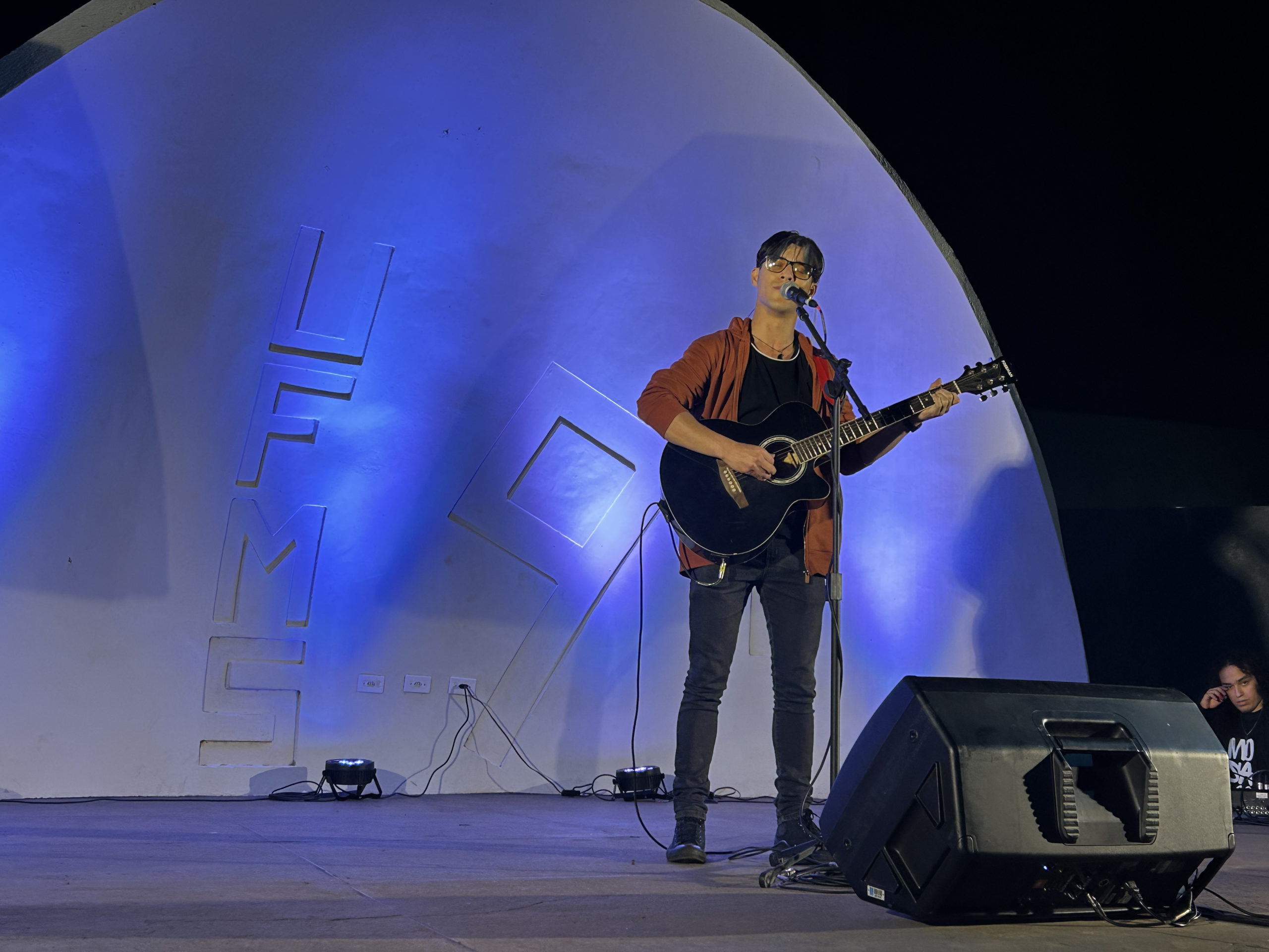 O estudante de Artes Visuais da Faculdade de Artes, Letras e Comunicação (Faalc) Guilherme Palacio iniciou as apresentações do palco aberto cantando dois hits de rock alternativo em versão adaptada para o português. “Eu sempre pego qualquer oportunidade que tenho para mostrar o que faço, e aqui na Universidade não é diferente. Eu não lanço música como artista, não tenho nenhum álbum lançado. Por isso, foi perfeita essa chance de mostrar um pouquinho do meu trabalho”, agradeceu.