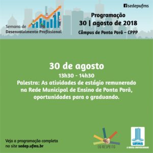 No dia 30 será realizada uma palestra no Campus de Ponta Porã (CPPP), como parte da programação da Semana de Desenvolvimento Profissional, realizada em diversos campi.