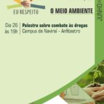Ministrada pela Polícia Federal, a palestra irá conscientizar acadêmicos e servidores sobre os tipos de drogas, seus riscos e como é possível combatê-las. A atividade será às 19h, no anfiteatro do campus, e integra a programação da campanha Eu Respeito, que possui mensalmente ações de conscientização e promoção de diversos temas.