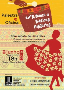No dia 8 de junho, às 18h, no Teatro Glauce Rocha, acontece a palestra e oficina: Corpo, Dança e Poéticas populares, sobre o estudo do movimento expressivo. A partir de um vocabulário de manifestações tradicionais e populares brasileiras, a atividade usa como metodologia o jogo, o canto e exercícios que buscam desenvolver a consciência corporal e expressividade presentes nos valores estéticos da cultura afro-brasileira.