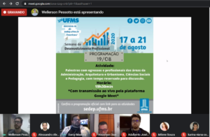 Na noite de ontem, 19, foi realizado um ciclo de palestras com a presença de acadêmicos, egressos e profissionais das áreas de atuação dos cursos de Administração, Arquitetura e Urbanismo, Ciências Sociais, oferecidos pelo Campus de Naviraí. A atividade integrou a Semana de Desenvolvimento Profissional da UFMS e reunião cerca de 400 pessoas divididas entre as quatro salas de bate-papo abertas simultaneamente.