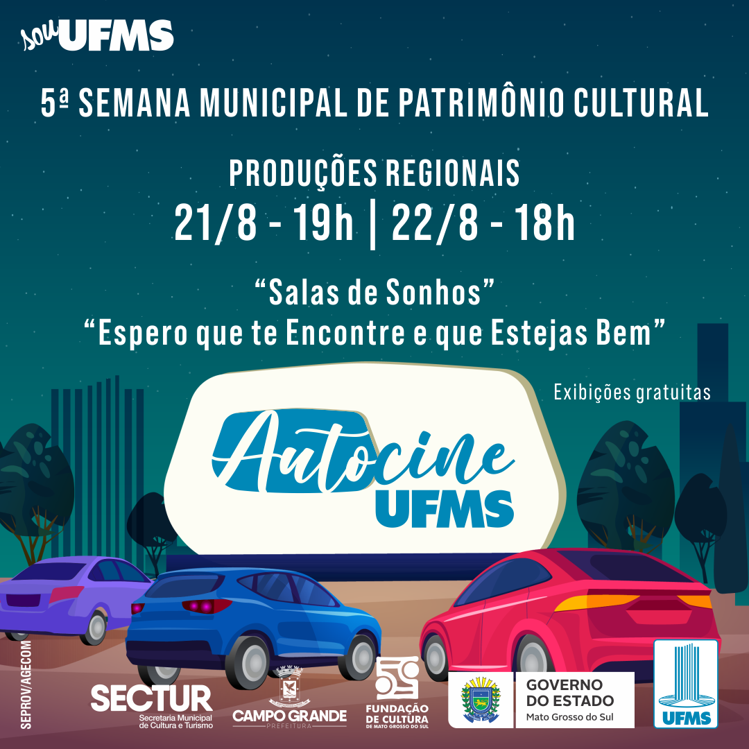 A programação no Autocine UFMS integra a 5ª Semana Municipal de Patrimônio Cultural e ocorre de acordo com a parceria da UFMS e a Prefeitura de Campo Grande, por meio da Secretaria de Cultura e Turismo (Sectur).