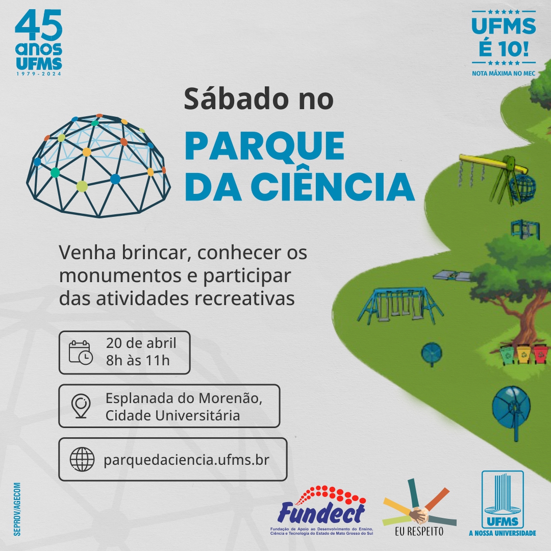 “A partir deste mês de abril, vamos realizar no terceiro sábado de cada mês, programação com atividades lúdicas, brincadeiras científicas, para as crianças conhecerem o nosso Parque da Ciência. Nós ficamos muito felizes em recebê-los, pois a Universidade proporciona para as comunidades conhecer o mundo da ciência. Estamos com novos monumentos!”, ressalta o pró-reitor de Extensão, Cultura e Esporte, Marcelo Fernandes.