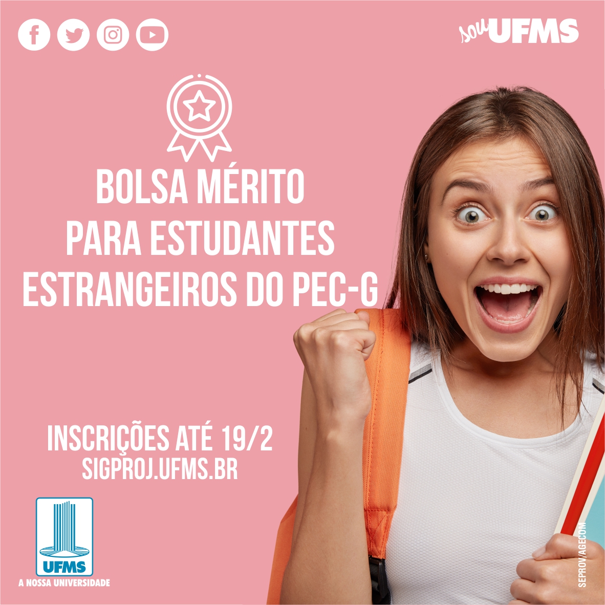 A Bolsa Mérito é um auxílio financeiro voltado aos estudantes do PEC-G que demonstram desempenho excepcional. “Os estudantes do PEC-G com bom desempenho acadêmico podem ser beneficiados com uma bolsa no valor de R$ 622 por mês, concedida por um período de seis meses. Além disso, os beneficiários fazem jus à passagem aérea de retorno ao país de origem, quando da conclusão do curso”, explica o pró-reitor de Graduação, Cristiano Costa.