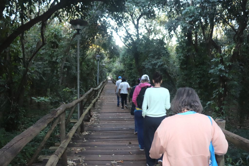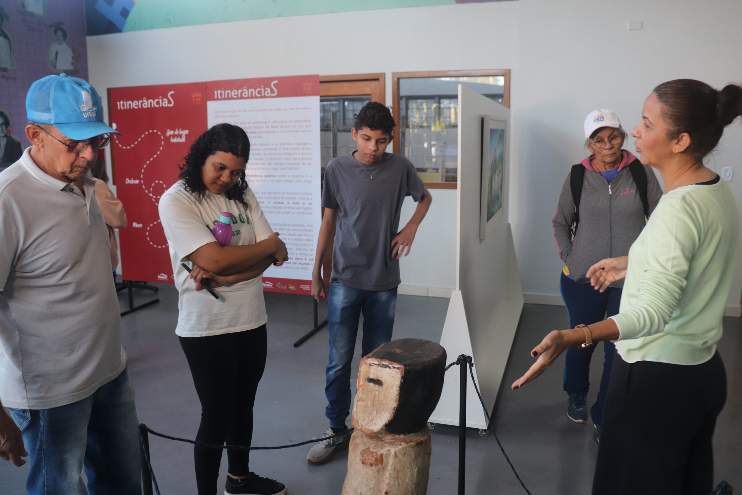 A atividade começou pela exposição Ciclo Entre Olhares: Poéticas Autorais, na Galeria de Artes Visuais, localizada no bloco 8, com a presença do autor e professor do curso de Artes Visuais da Faculdade de Artes, Letras e Comunicação (Faalc), Isaac Camargo. Na sequência, os presentes conferiram o Memorial Glauce Rocha, à disposição no teatro com mesmo nome da atriz campo-grandense, e visitaram a exposição Itinerâncias, na Casa da Ciência e Cultura, composta pelo acervo original da UFMS de obras de artistas plásticos regionais. Por fim, os participantes percorreram a Passarela Ecológica, em direção ao auditório Professor Luis Felipe de Oliveira, no setor 3, onde a programação foi finalizada. Por lá, todos puderam contemplar a mostra coletiva Jovens Artistas, com produções de estudantes e egressos.