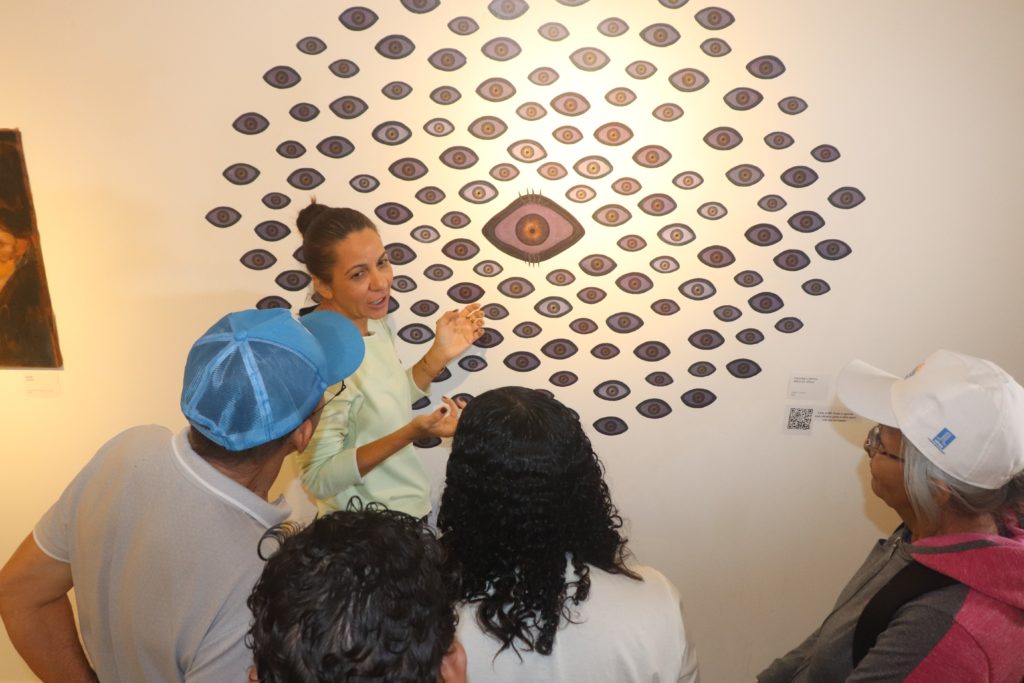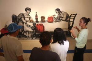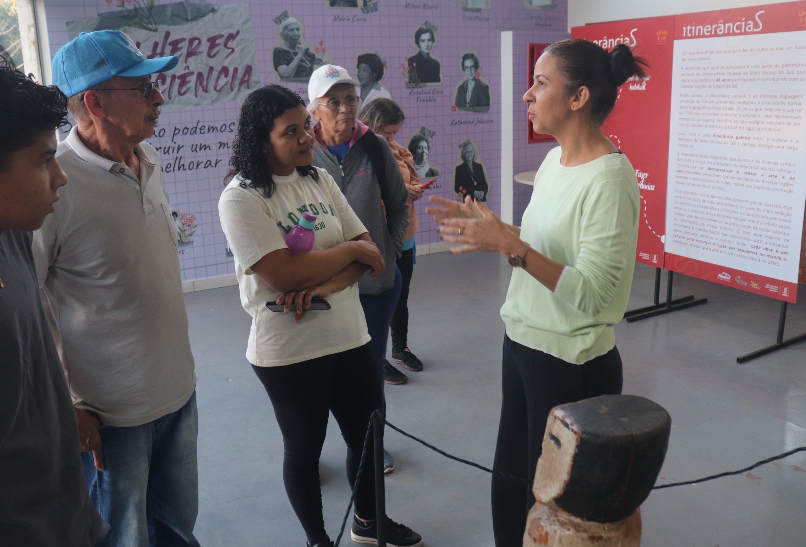 A diretora de Cultura, Arte e Popularização da Ciência da Pró-Reitoria de Extensão, Cultura e Esporte (Proece), Rozana Valentim, acompanhou os grupos durante todo o percurso, fornecendo informações sobre os pontos visitados e trazendo explicações e curiosidades sobre as obras. “Nossa ideia foi integrar as pessoas, para que elas tivessem atividades para fazer durante as férias, ainda mais que estamos com quatro exposições montadas. Com a caminhada, tornamos isso mais acessível, trazendo as pessoas para conhecer a Universidade. A gente tem aqui muitos equipamentos culturais que às vezes nunca foram visitados, e a Universidade é um lugar sempre aberto para a população, para fazer esse diálogo, para a formação das pessoas”, afirmou.