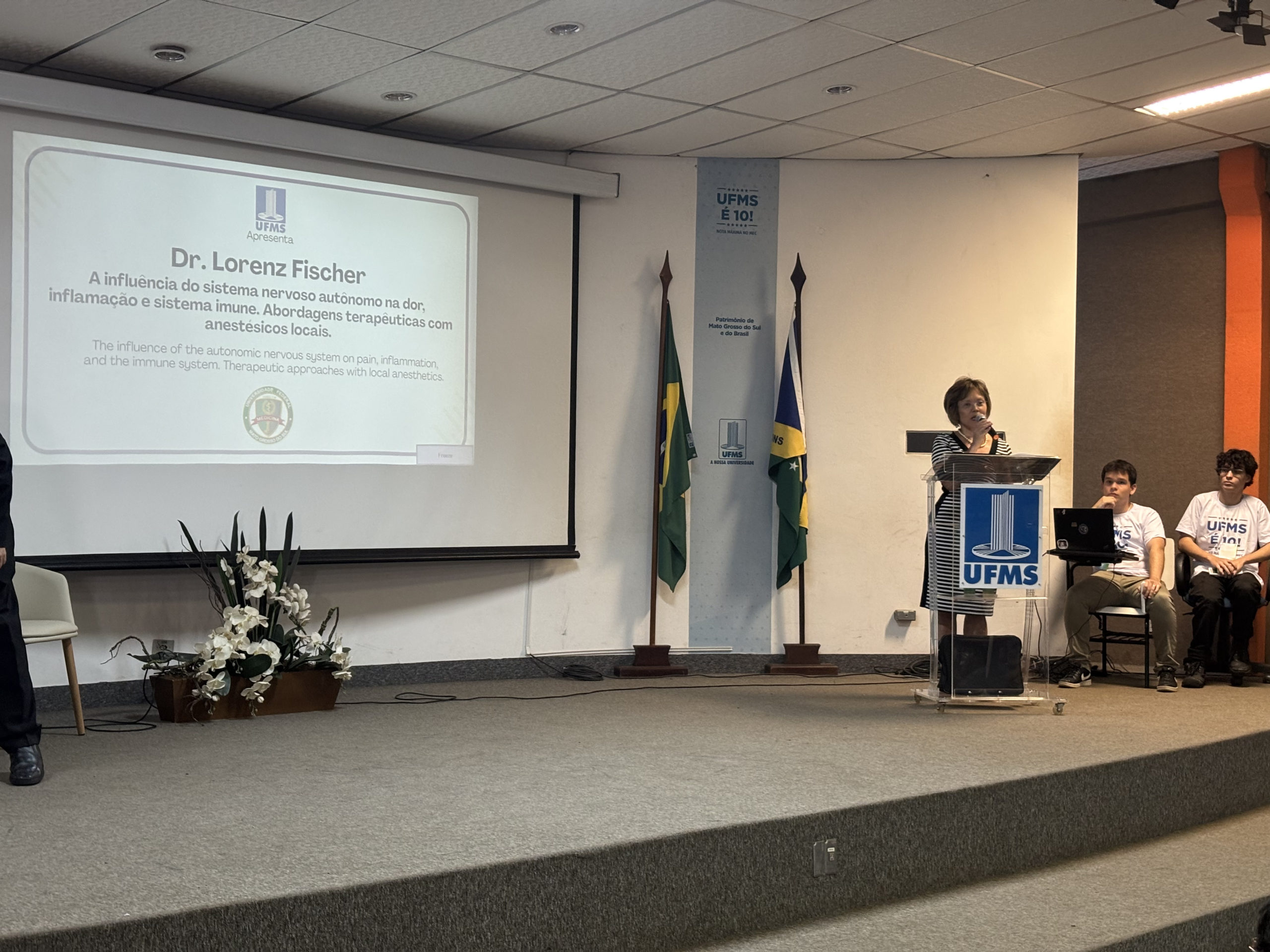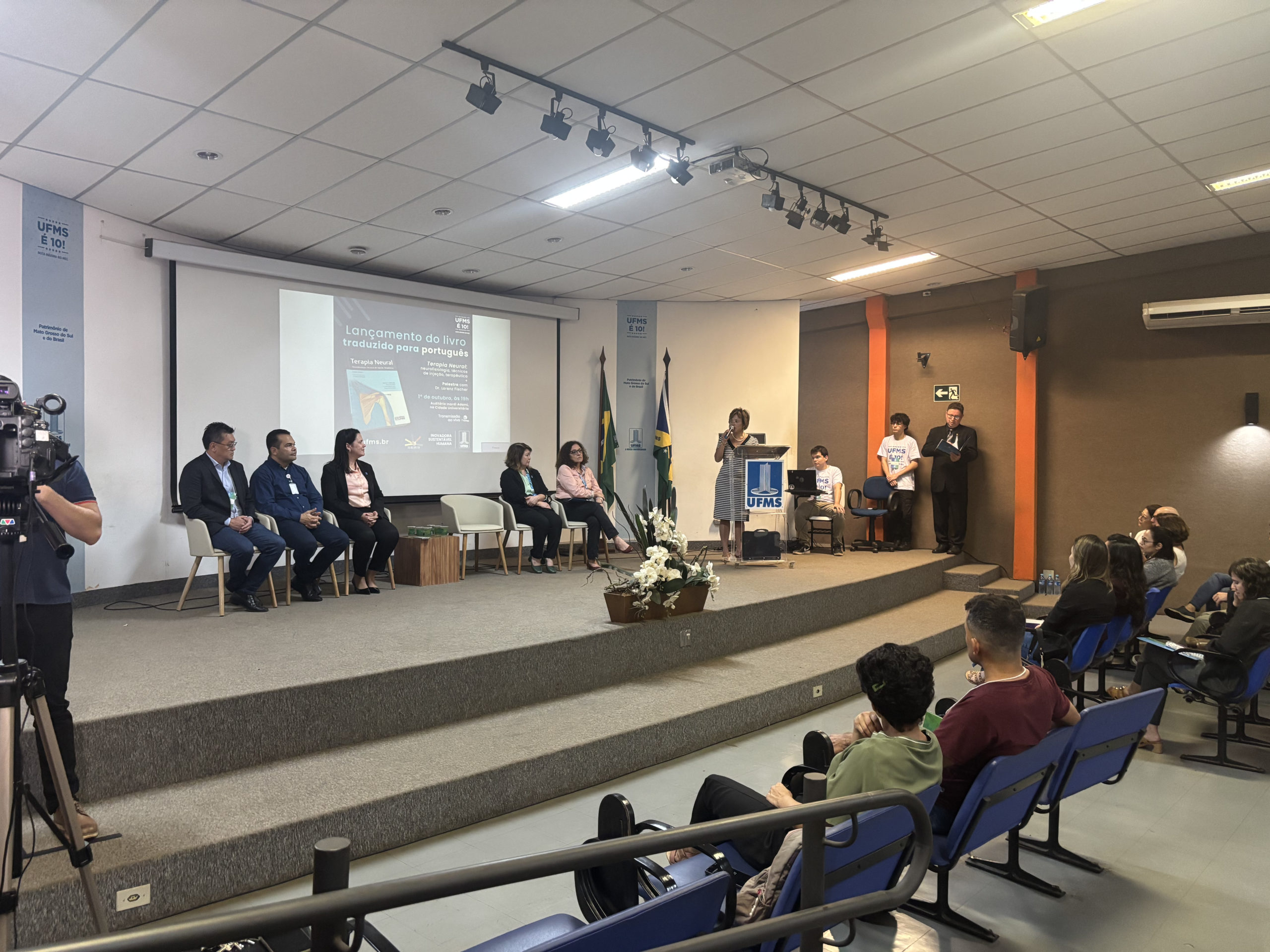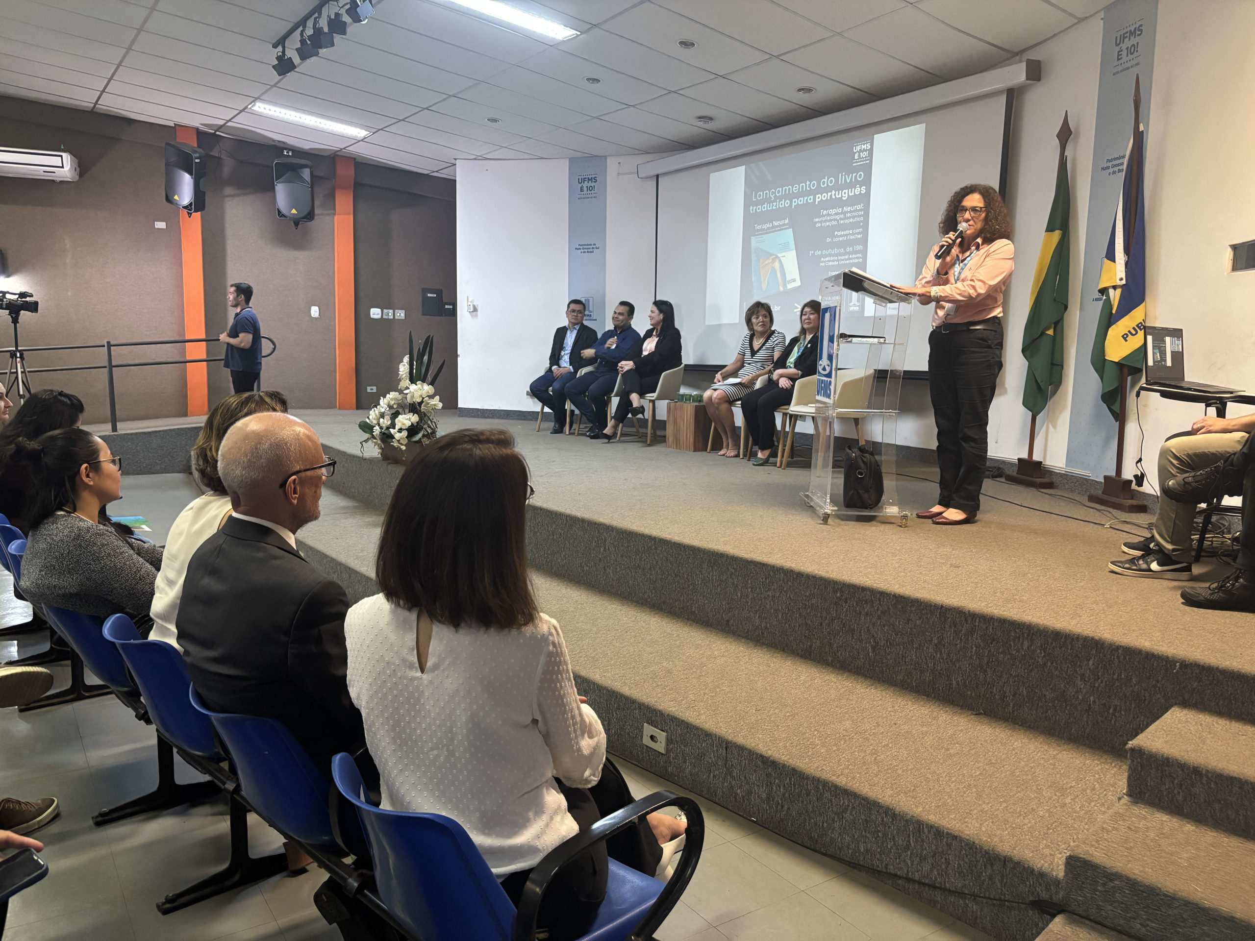 Na noite desta quarta-feira, 1º, foi realizado o lançamento do livro Terapia Neural: neurofisiologia, técnicas de injeção, terapêutica, com palestra do autor e professor suíço Lorenz Fischer no auditório Inardi Adami, na Cidade Universitária. A obra foi traduzida pela primeira vez para a língua portuguesa pela Editora UFMS. O evento foi transmitido ao vivo pelo canal da TV UFMS.