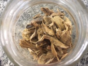 Para a pesquisa, a mestranda reproduziu em laboratório o modo do preparo dos populares do Jardim Noroeste. Colheu a raiz do pequi, retirou a casca, higienizou e depois depositou um punhado em garrafa de vidro.