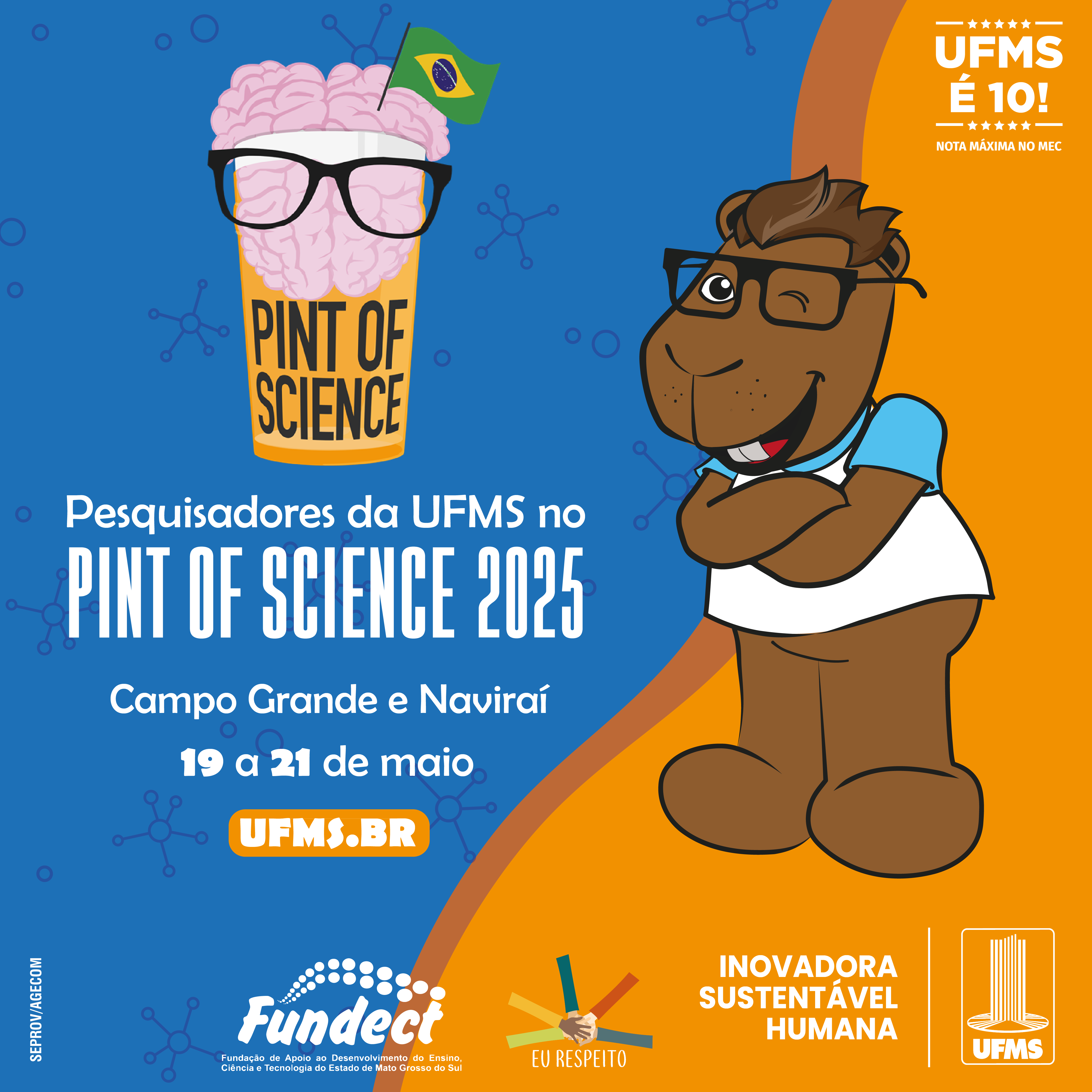 Entre os dias 19 e 21 de maio, os bares de Campo Grande e de Naviraí irão sediar encontros do Pint of Science. Criado em 2012, o festival é realizado anualmente de forma simultânea em mais de 25 países, com o objetivo de aproximar a ciência da sociedade. A programação é aberta ao público e terá a participação de pesquisadores da UFMS.