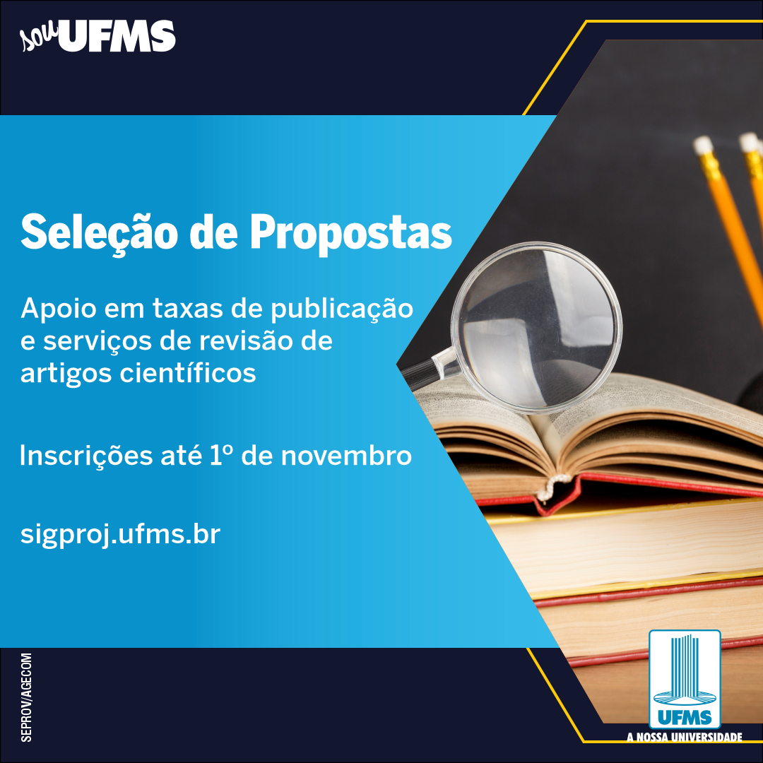 Pesquisadores da UFMS podem solicitar auxílio financeiro para pagamento de taxas de publicação e para serviços de revisão de artigos científicos em língua estrangeira. A ação tem como objetivo fomentar as produções científicas e tecnológicas, além de promover a interação entre a Universidade e a sociedade. As inscrições podem ser realizadas no Sistema de Informação e Gestão de Projetos (Sigproj) até o dia 1º de novembro.