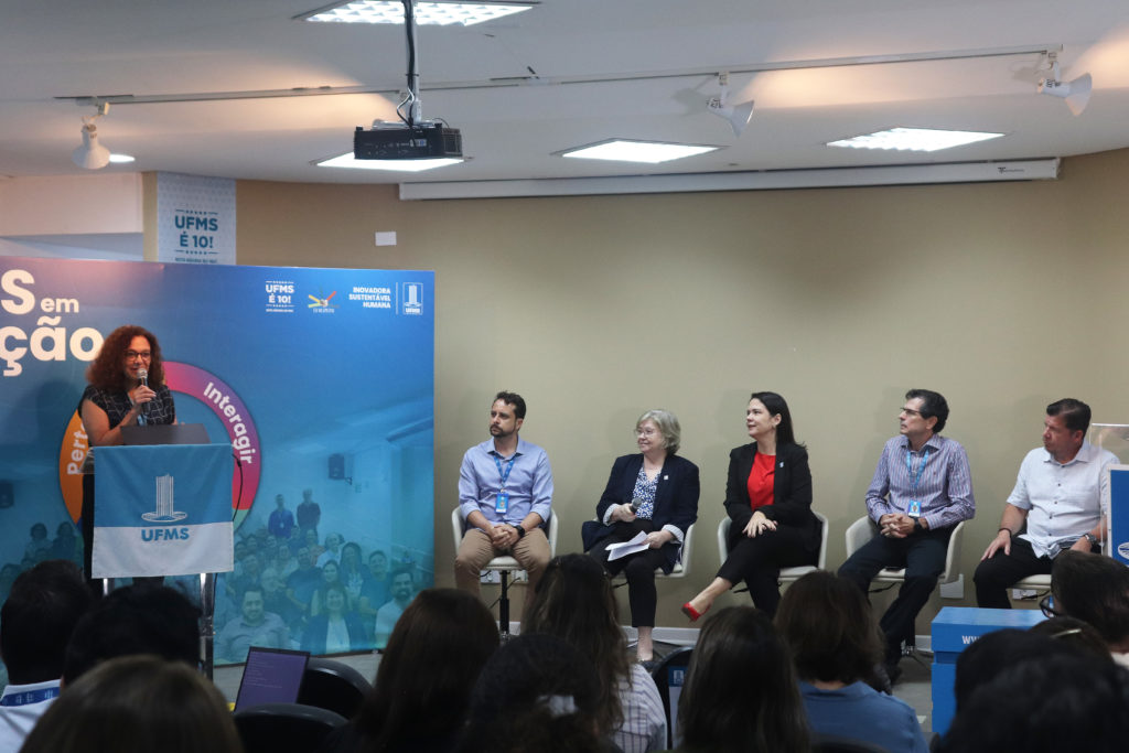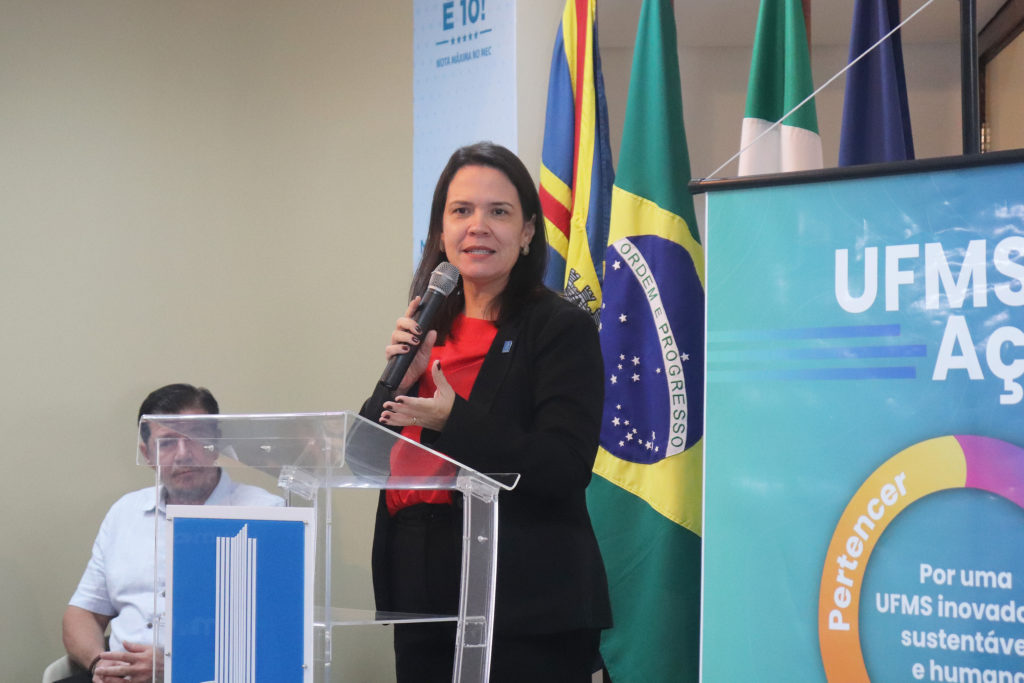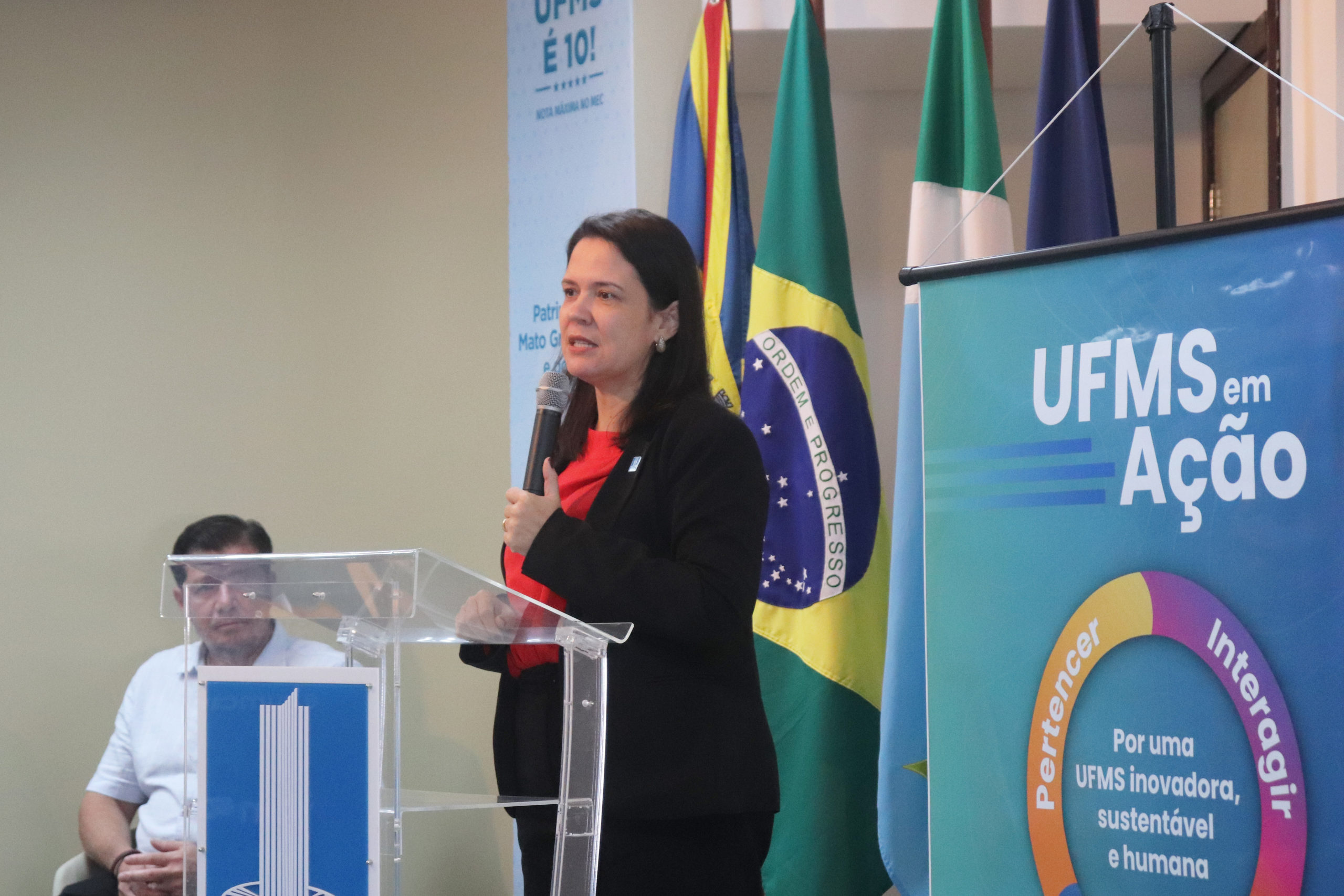 A pró-reitora de Planejamento e Desenvolvimento Institucional, Dulce Tristão, lembrou sobre a construção do PDI e falou sobre a nova plataforma. “No fim de 2023, começamos a discutir que Universidade queremos ser em 2030. No PDI, tivemos a participação de várias comissões, discutimos intensamente durante aproximadamente seis meses e inovamos com a UFMS Participativa, uma plataforma na qual foi possível toda comunidade universitária e a comunidade externa também participaram desse processo de construção do PDI. Foram mais de oito mil participações, discutindo a missão, a visão, valores, gestão acadêmica, processo de governança, gestão, metas. Em relação ao Projeto Pedagógico Institucional (PPI), foram discutidas as políticas do ensino de graduação, pós-graduação, acompanhamento de egressos, iniciação científica, extensão, internacionalização, responsabilidade social, comunicação, entre outras”, detalhou.