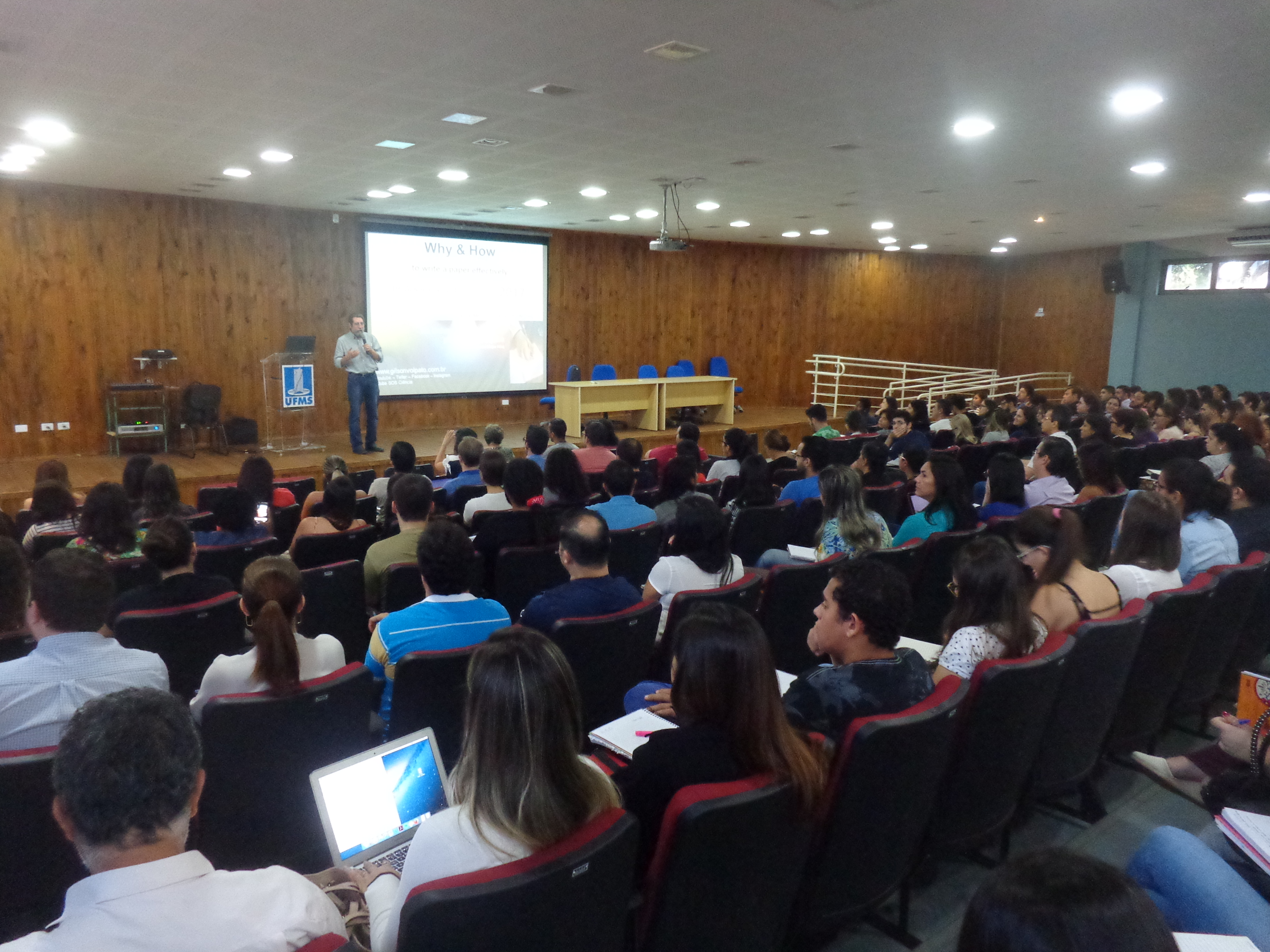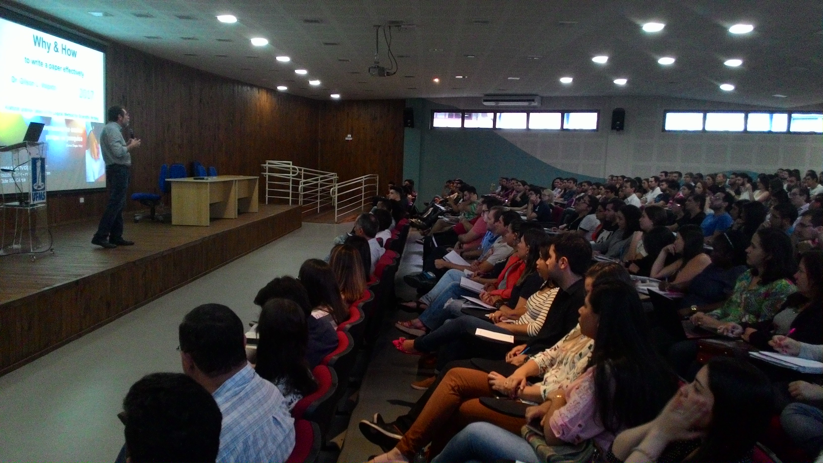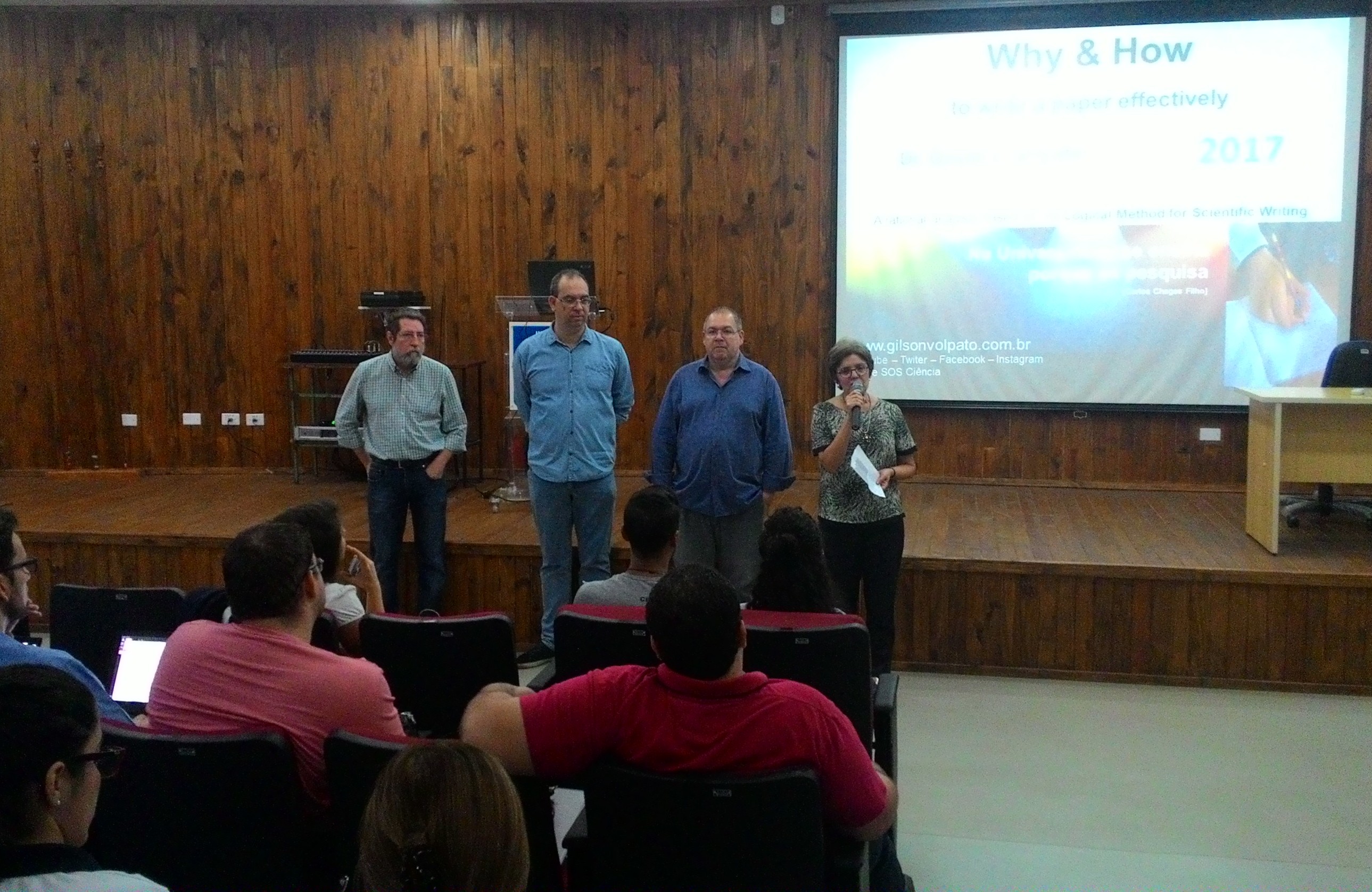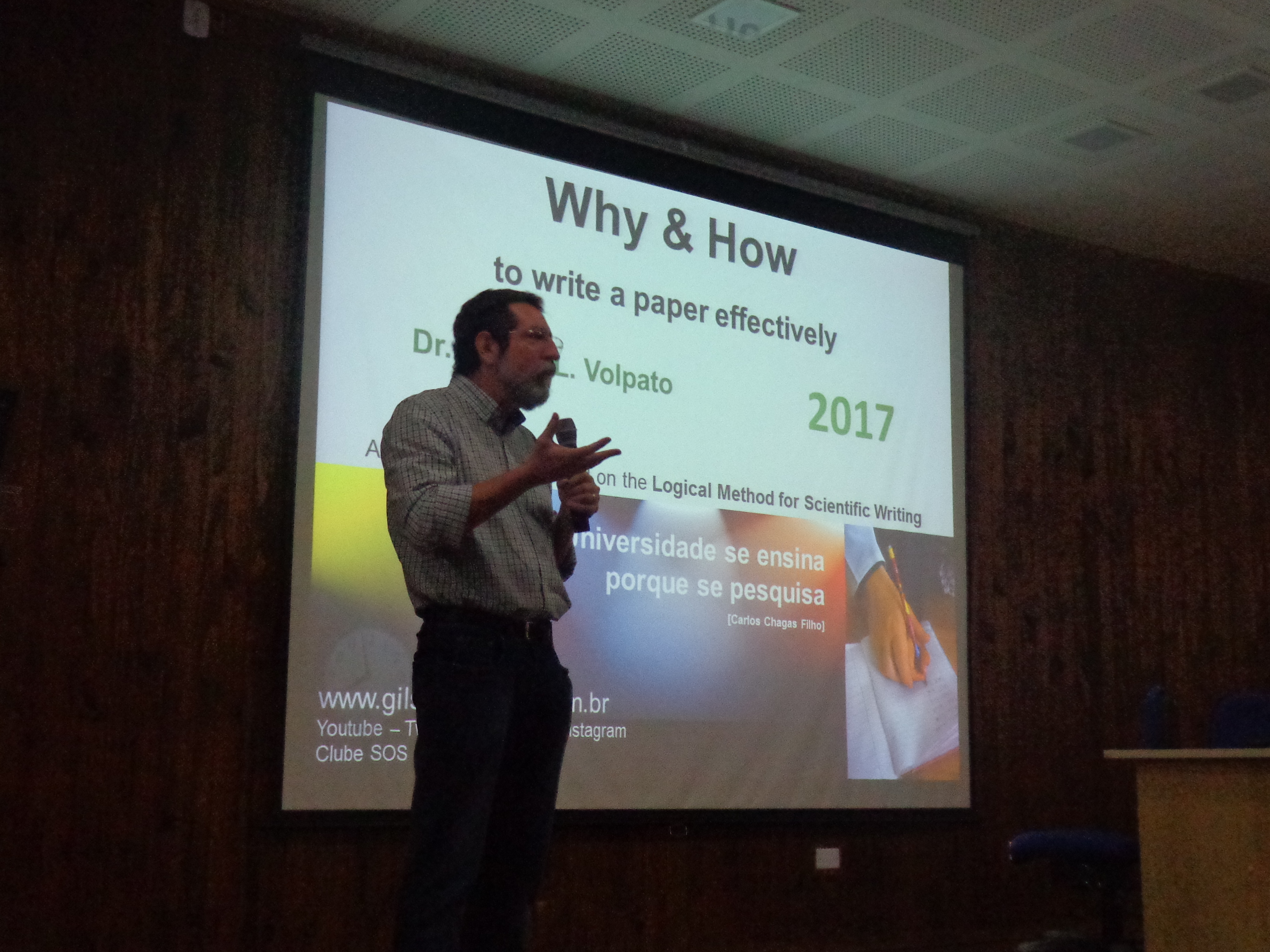 Cerca de 250 inscritos lotaram o Anfiteatro 2 do Complexo Multiuso hoje (30) para um curso com o professor Gilson Volpato, da UNESP de Botucatu. Intitulado “Why and How to write a paper effectively” – Por que e como escrever um trabalho efetivamente -, o curso aborda a escrita científica incluindo bases filosóficas, metodológicas e comunicacionais na ciência, bem como toda estrutura lógica de um texto científico e do estilo científico de redação.