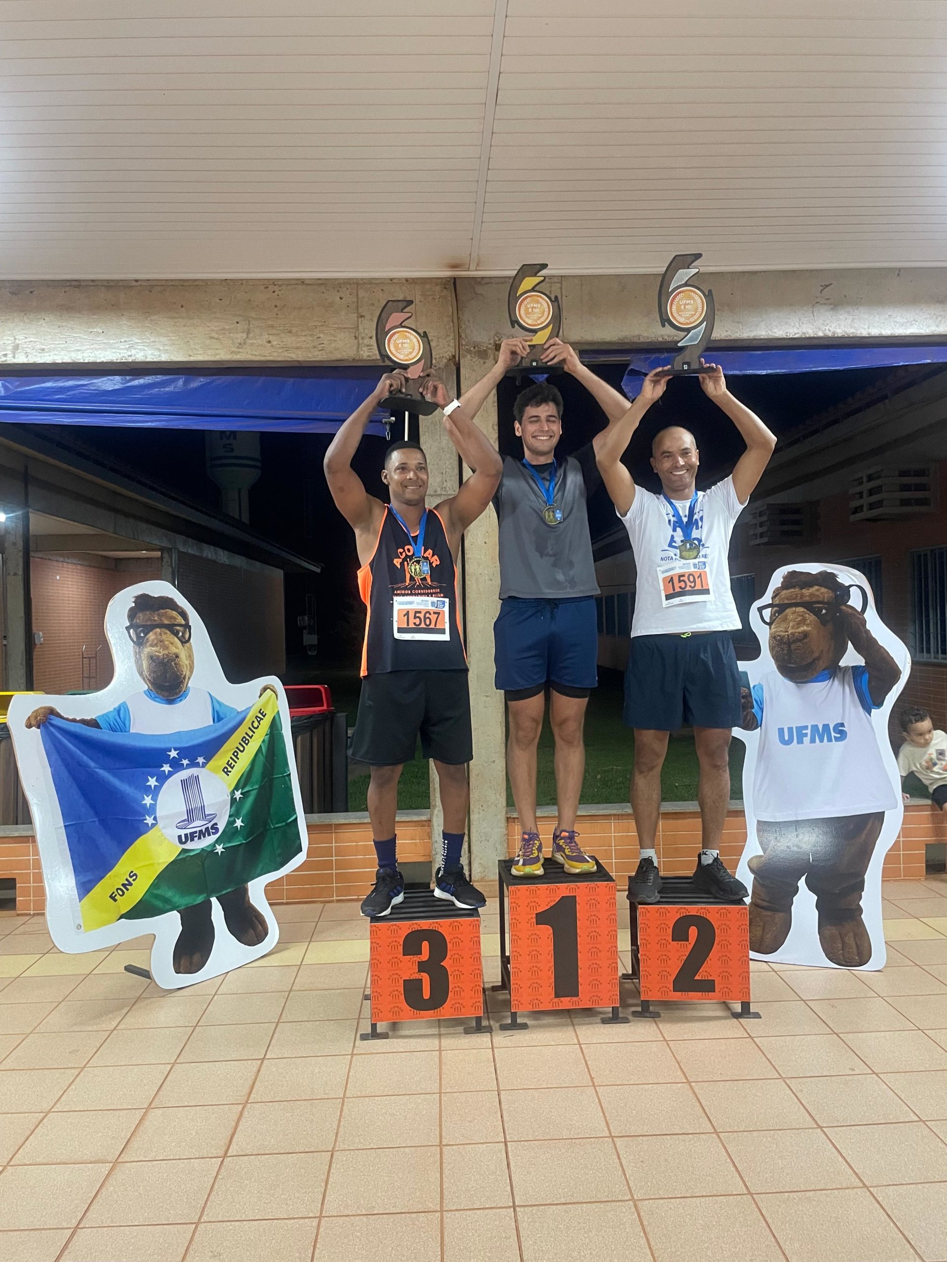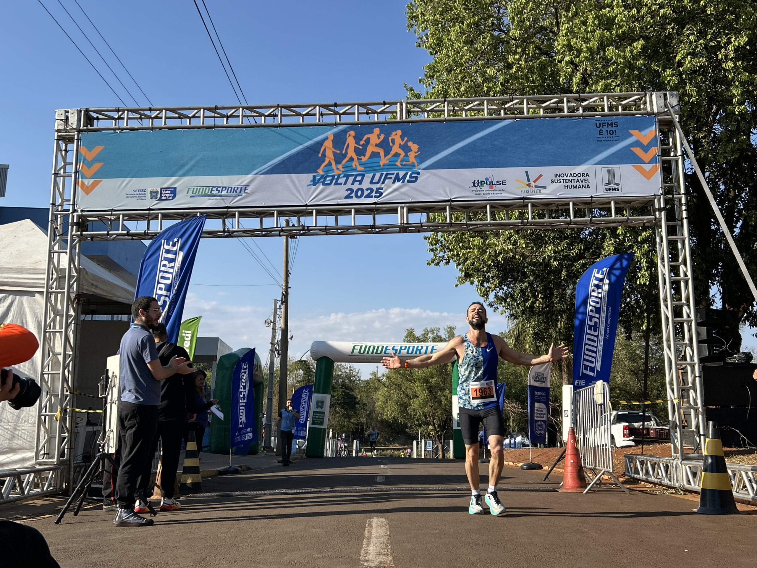 O artista Leonardo Mareco conquistou o primeiro lugar da comunidade externa na categoria 16 a 29 anos da corrida de 7km. “Eu sou egresso aqui da UFMS, fui acadêmico de Artes Visuais e agora estar podendo voltar, ganhar na minha categoria, foi muito bacana. Esse percurso bastante desafiador, bastante subida, vento, mas como a UFMS é bastante arborizada, tem bastante árvores, deu para render bastante”, revelou.