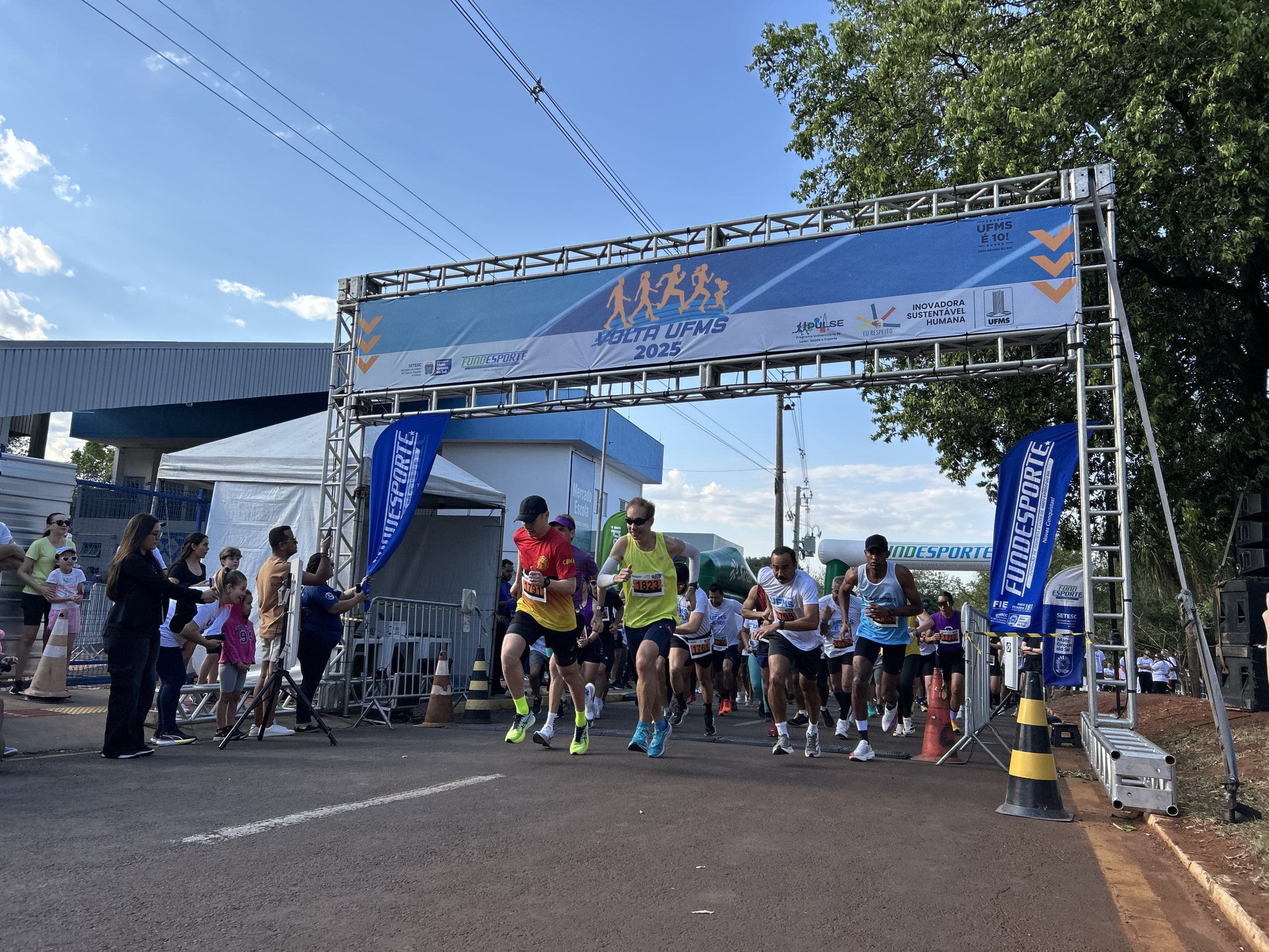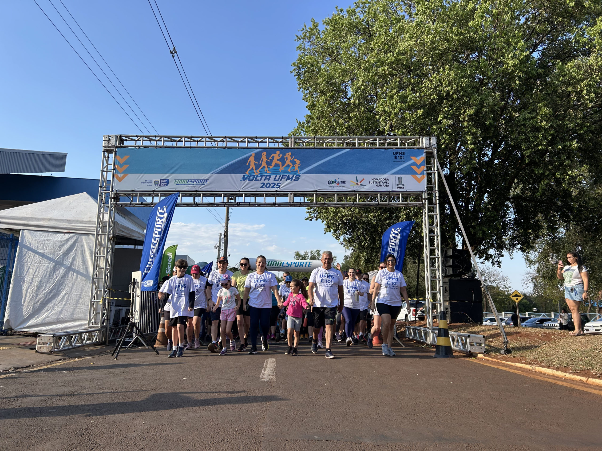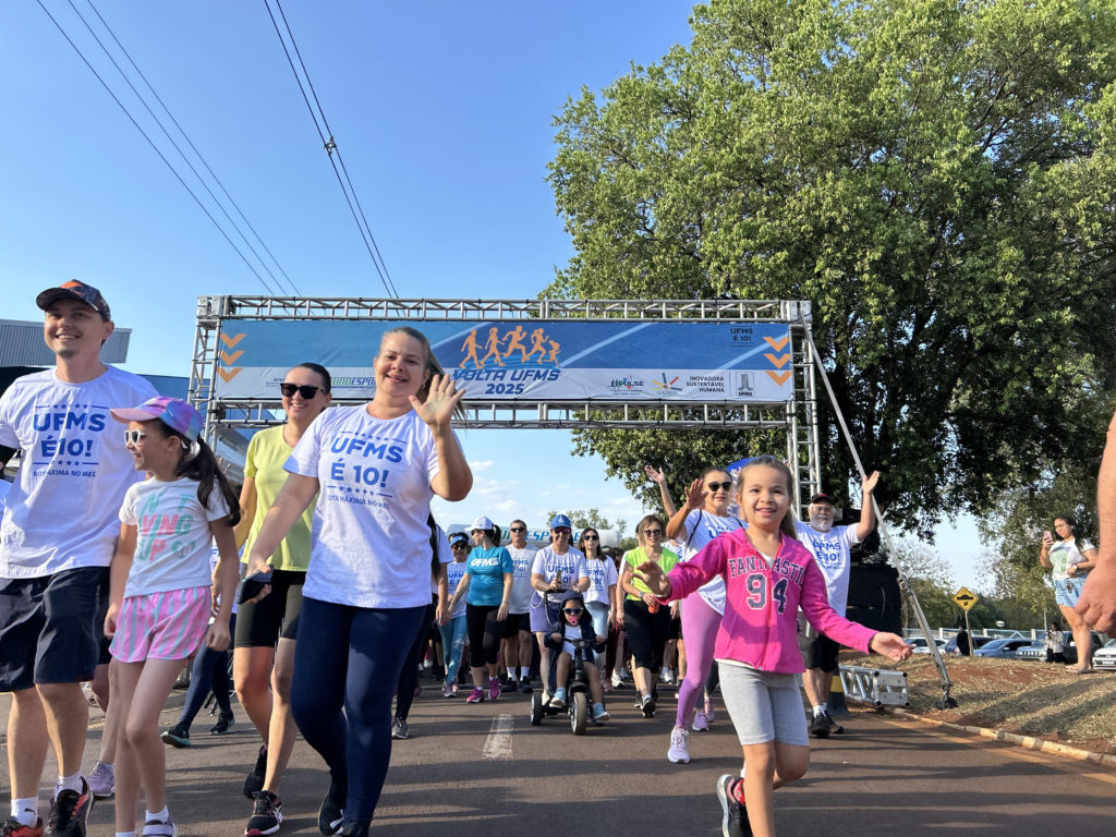 Neste fim de semana, 30 e 31, a Volta UFMS 2025 abriu as portas da Universidade para a realização de diferentes atividades físicas para toda a população. Estudantes, servidores, colaboradores, familiares e a comunidade externa se reuniram na Cidade Universitária e na UFMS de Aquidauana (CPaq), Coxim (CPCX), Nova Andradina (CPNA), Três Lagoas (CPTL) e do Pantanal (CPan) para a prática do Mutirão do Bem – Plogging; Corrida de Orientação; Corridinha UFMS 2025, voltada para crianças e adolescentes de 4 a 15 anos; pedalada com o projeto MS Pedalando Para o Futuro; Caminhada nos Câmpus; atividades do projeto Pernas Solidárias; a edição especial do Sábado no Parque; além da Caminhada, com 3km, e das corridas de 4 e 7km, com novo percurso.