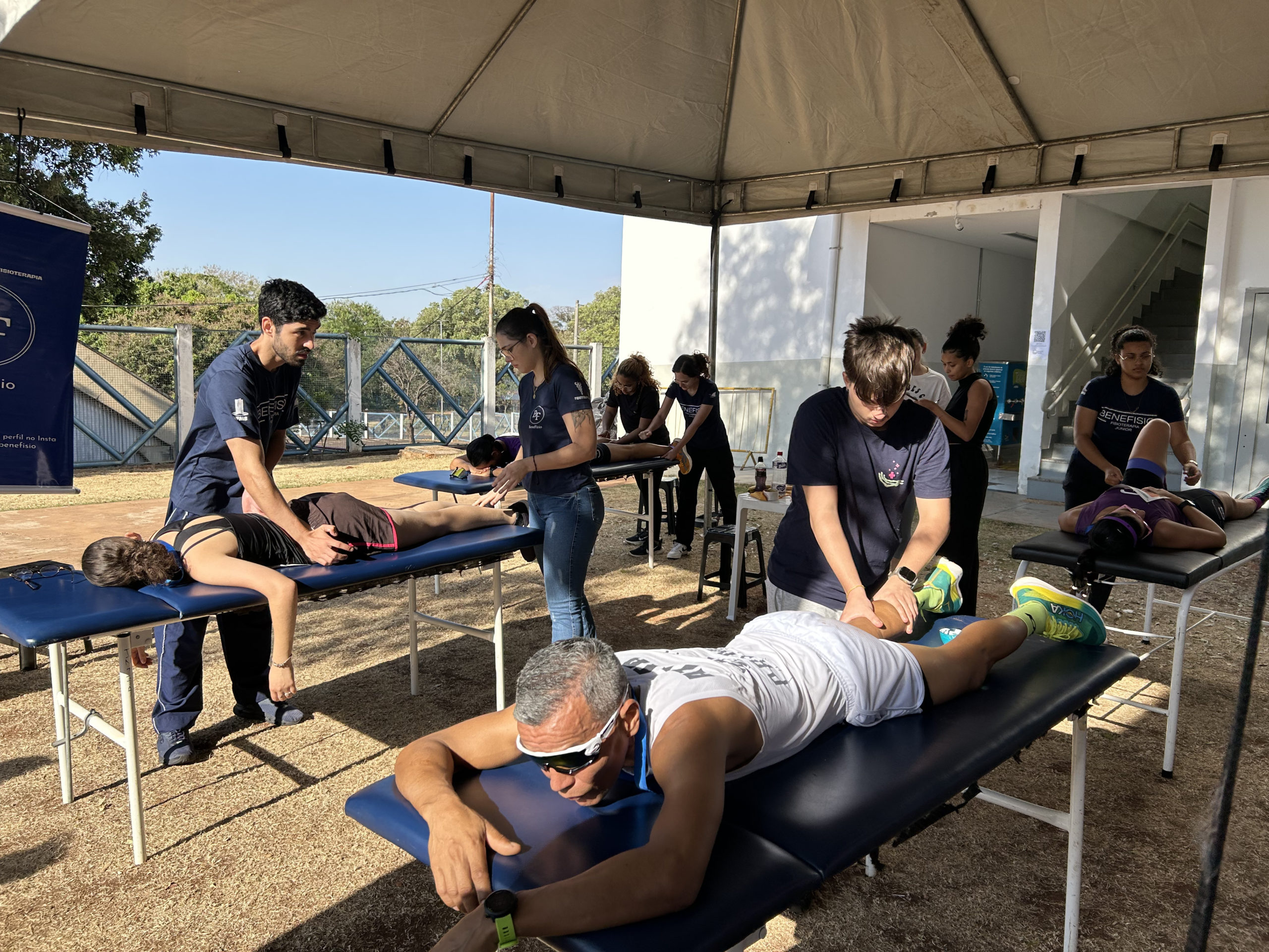 Entre os serviços oferecidos estavam massagens desportivas e liberação miofascial, realizadas por integrantes da Empresa Júnior Benefisio. “O objetivo hoje é justamente trazer conforto para os atletas e ajudar no bem-estar em geral deles. […] A nossa massagem vai fornecer uma maior circulação, um maior aquecimento do músculo antes da atividade propriamente dita. Depois da atividade física, vai trazer um relaxamento e uma tranquilidade maior para o cliente, para o paciente”, comentou o estudante do curso de Fisioterapia do Inisa Samuel Borba.