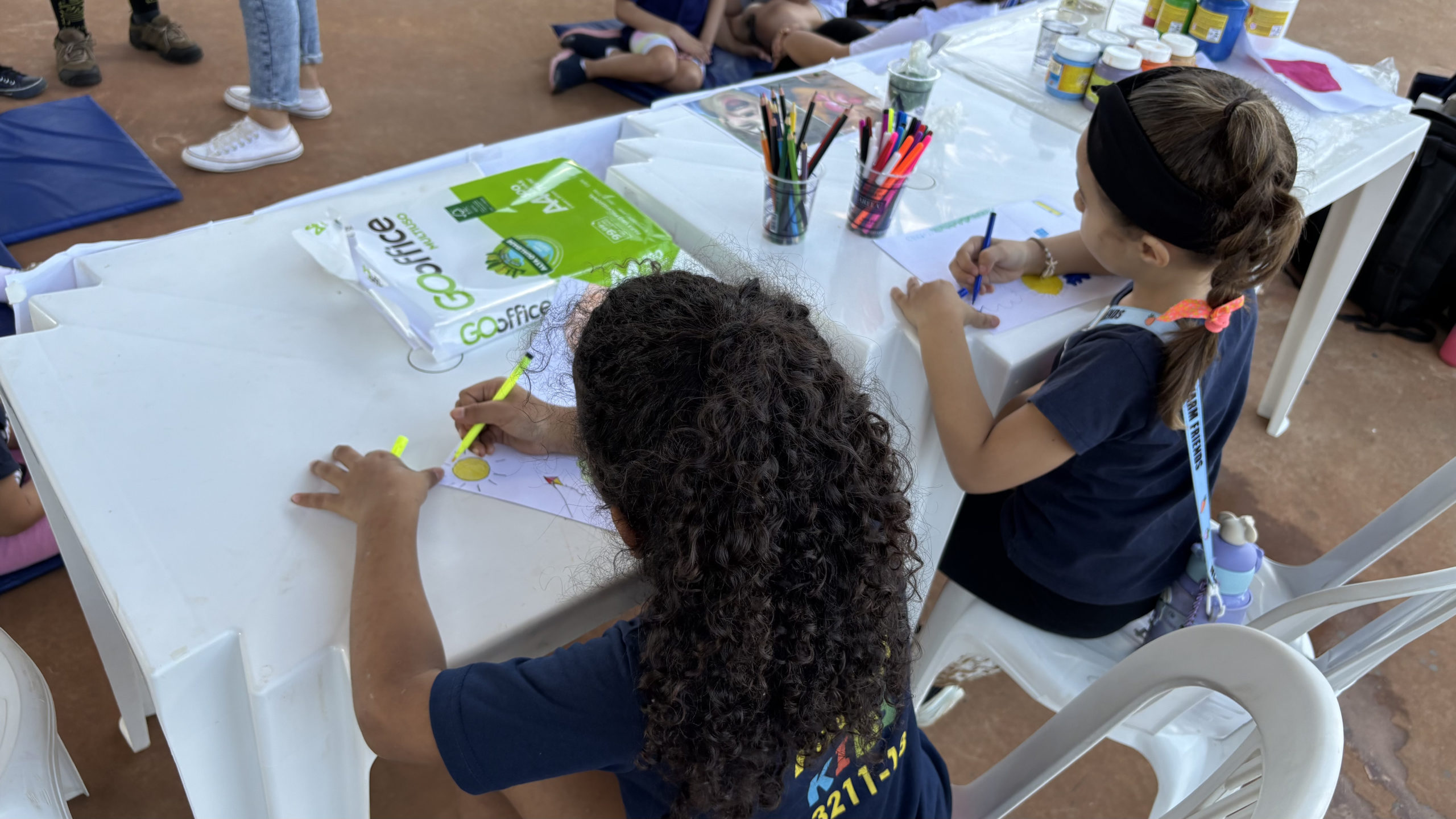 Murilo Henrique e Felipe La Flor, ambos de 12 anos, cruzaram a linha de chegada do percurso de 200m abraçados. “Queria falar que fiquei muito feliz em participar, ainda mais com um amigo. Primeira corrida que eu participei e, antes de começar a corrida, a gente já tinha combinado que quando estivesse terminando, a gente ia se abraçar para fazer bonito. Deu para fazer, chegamos juntos e a amizade sempre ganha”, comentou Murilo. “Já tenho várias corridas que eu participei, fiquei várias em segundo, terceiro lugar, mas agora chegar em primeiro abraçado com o meu amigo, foi uma experiência muito legal”, complementou Felipe.