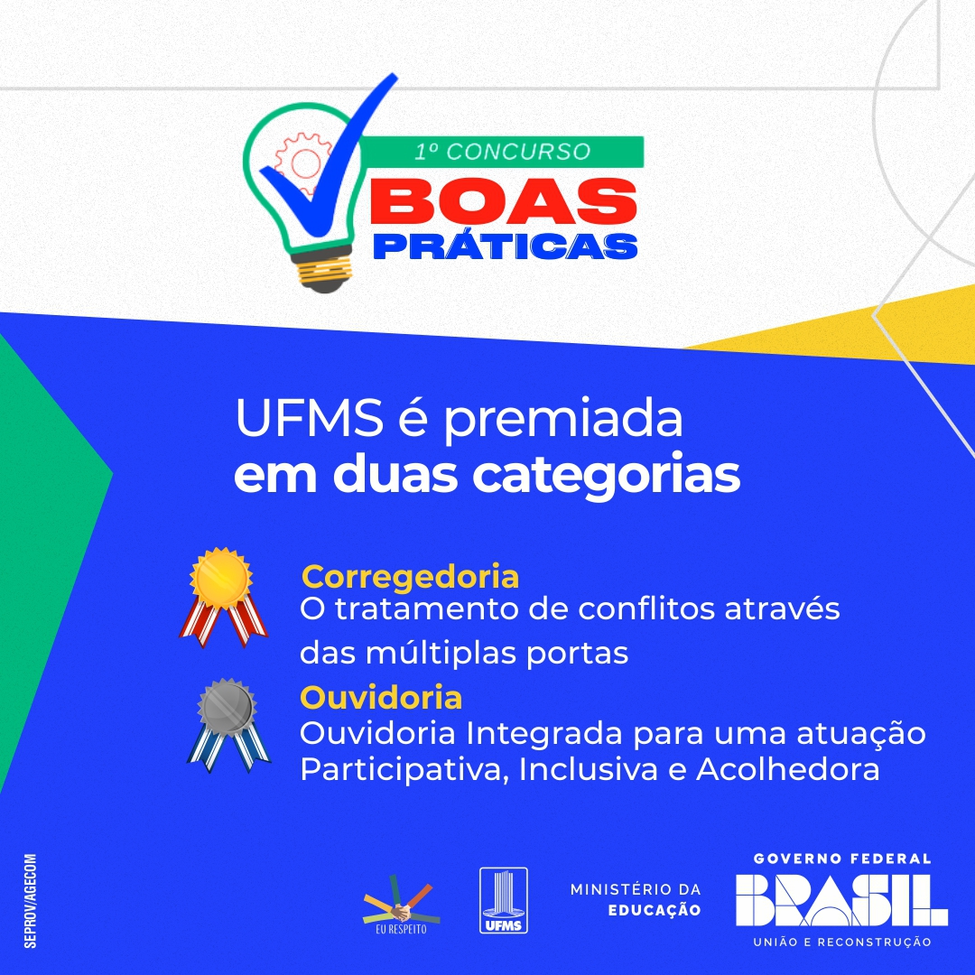 A prática O tratamento de conflitos através das múltiplas portas ficou em 1º lugar na categoria Aprimoramento da atividade correcional e de aplicação da Lei Anticorrupção e a prática Ouvidoria Integrada para uma atuação participativa, inclusiva e acolhedora ficou com o 2º lugar na categoria Aprimoramento das atividades de Ouvidoria. Além das duas práticas vencedoras, a iniciativa Ferramenta de gestão de projetos da Auditoria Interna Governamental da Universidade Federal de Mato Grosso do Sul também chegou à reta final do concurso e conquistou o 4º lugar na categoria Aprimoramento das atividades de auditoria interna.