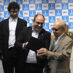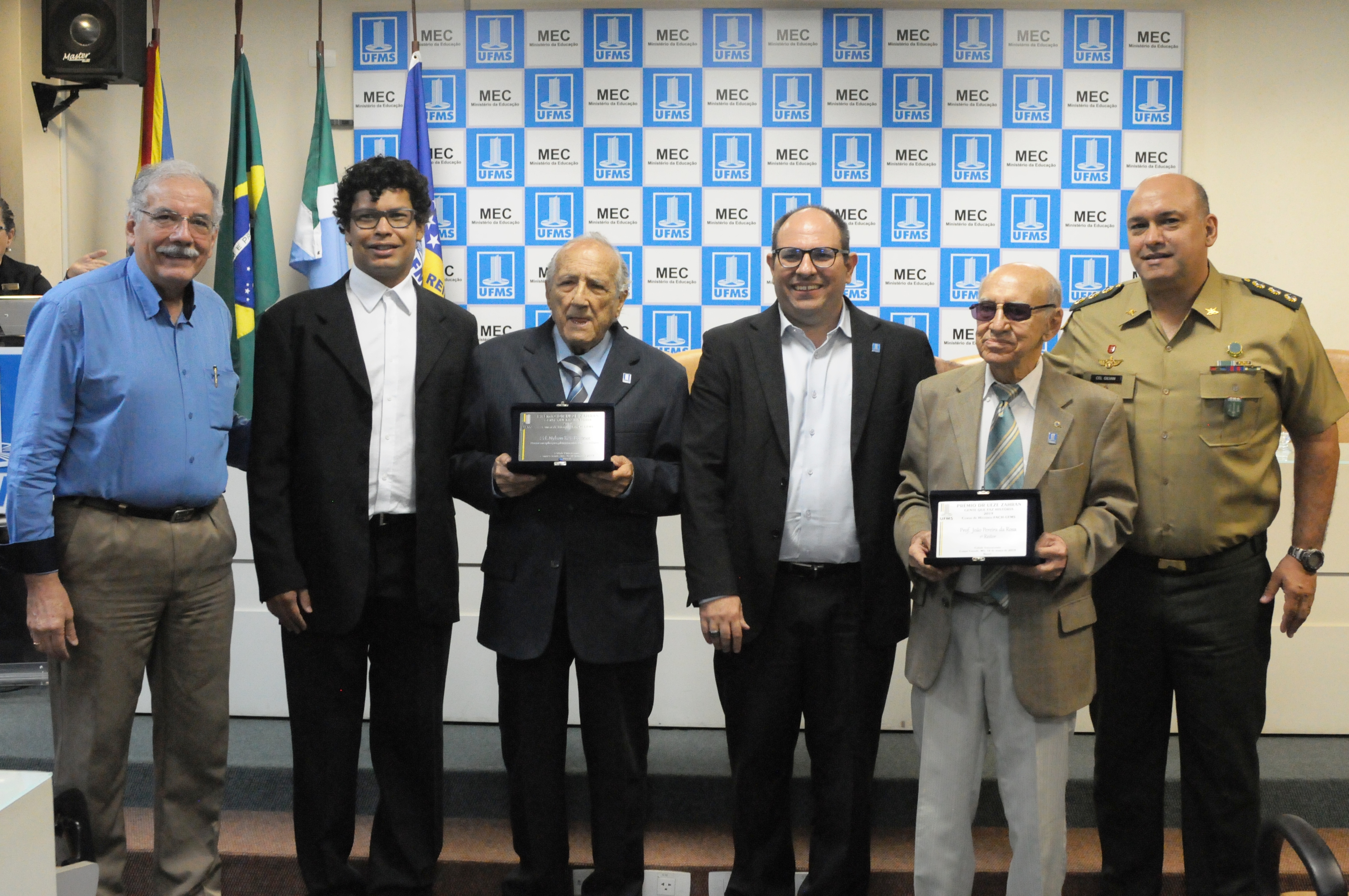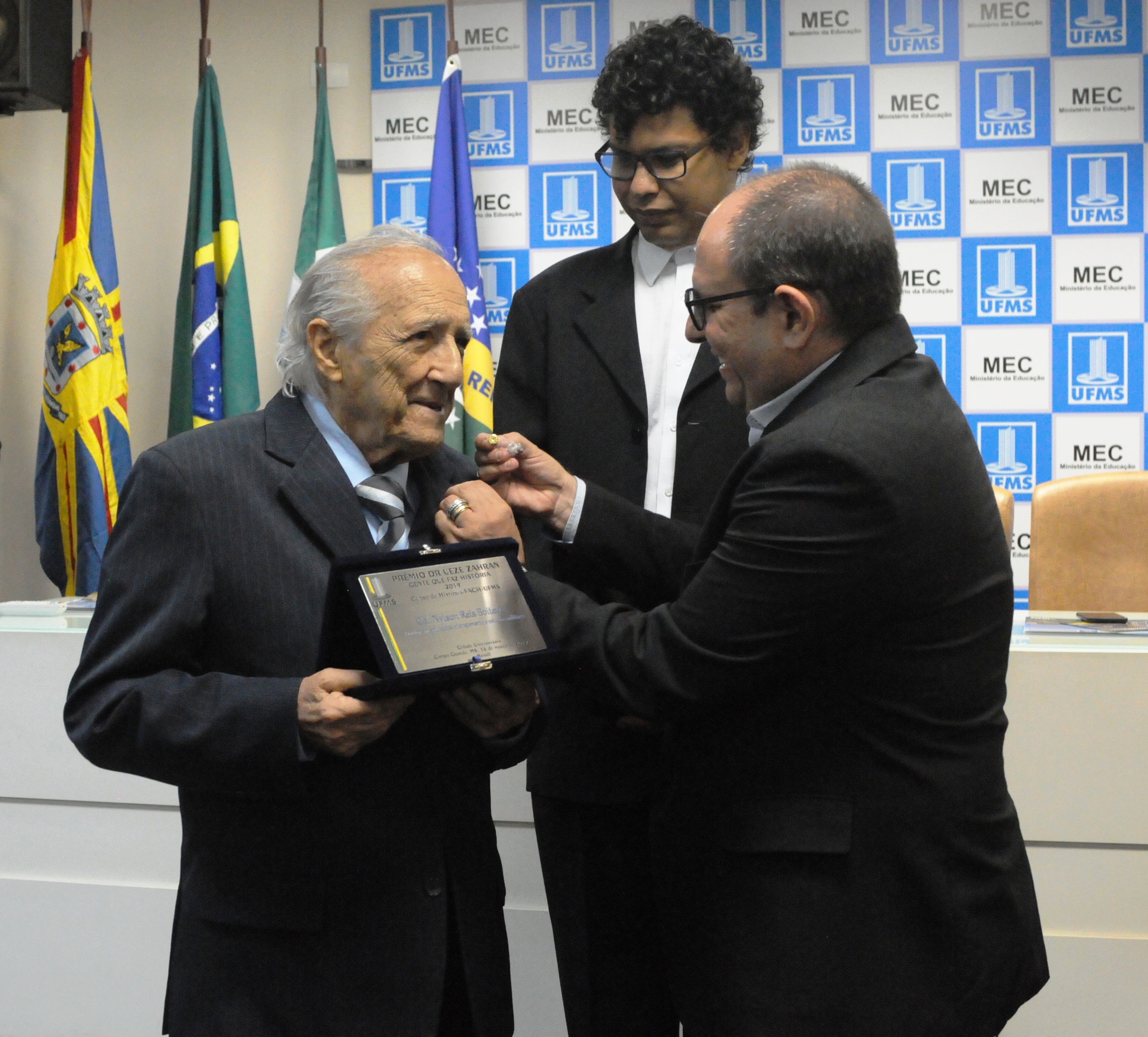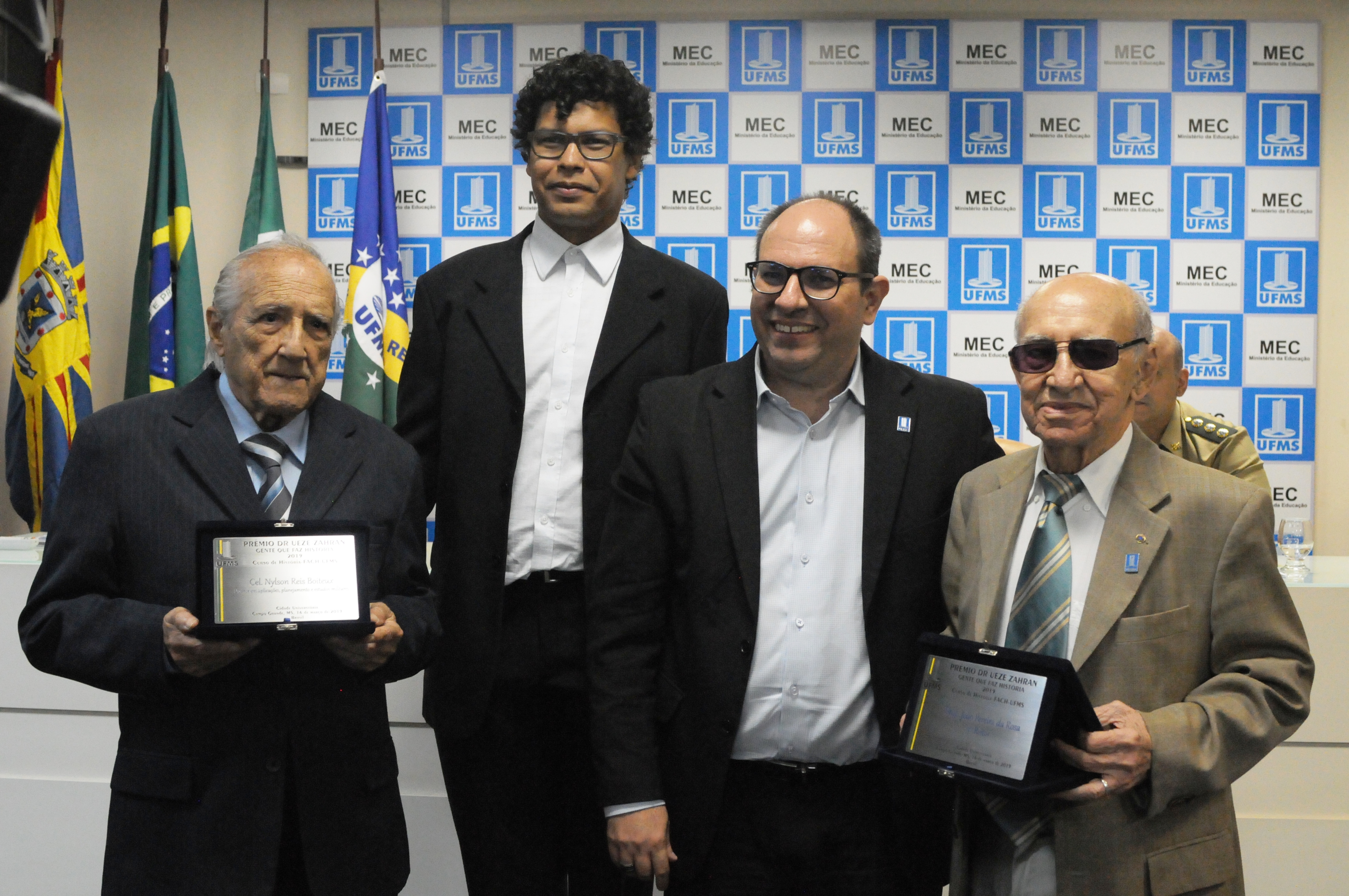 A cerimônia de entrega do Prêmio Dr. Ueze Zahran “Gente que faz história” 2019 foi realizada hoje (15) na UFMS. Os homenageados foram o primeiro reitor da Instituição, médico e criador da Academia de Medicina do estado, João Pereira da Rosa, e o doutor em aplicações, planejamento e estudos militares, diplomado pela Escola de Comando e de Estado Maior do Exército, Coronel Nylson Reis Boiteux. A homenagem é realizada desde 2011 pelo curso de História e pela Faculdade de Ciências Humanas (Fach).