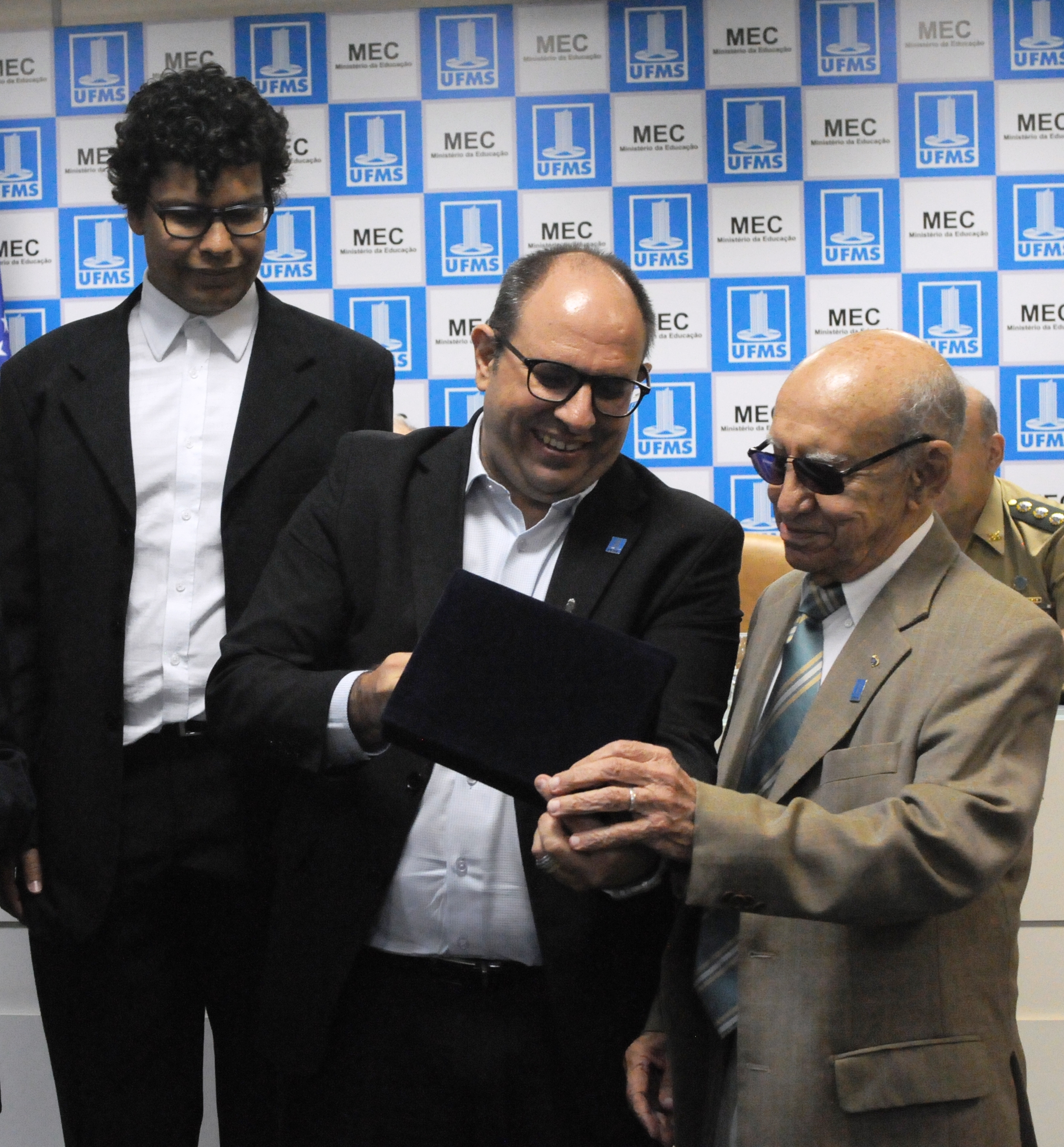 “Neste ano no qual comemoramos os 40 anos de federalização da UFMS e também os 18 anos do curso, homenageamos dois grandes cidadãos sul mato grossenses com o reconhecimento de sua trajetória em prol da educação, ciência e inovação no estado. Agradeço pelo seu empenho e dedicação e reafirmo que sem esse reconhecimento e sem a educação e a ciência não conseguiremos transformar a realidade do nosso povo e reduzir as desigualdades. A UFMS é uma grande família em prol do desenvolvimento de MS e do país”, afirmou o reitor Marcelo Turine.