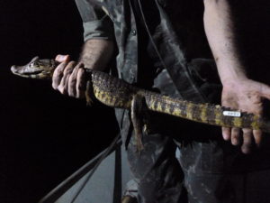 Com a dificuldade de classificação de alguns animais capturados pelos pesquisadores, por apresentarem características comuns às duas espécies, “amostras de sangue dos animais foram processadas por técnicas moleculares, pela amplificação parcial do gene COI, indicando processo de hibridização dos indivíduos entre as espécies Caiman latirostris e C. yacare, mas aspectos morfológicos dos animais bem como emprego de outros genes como parâmetros comparativos ainda estão em processo para maior robustez dos dados”, relatam os pesquisadores em relatório também assinado pela acadêmica Bianca Courbassier Simões, do curso de Ciências Biológicas.